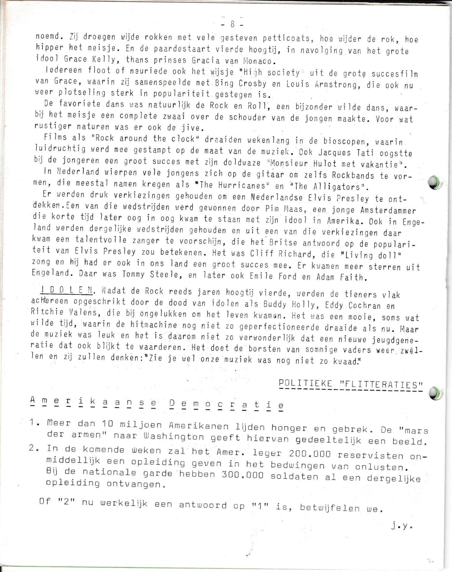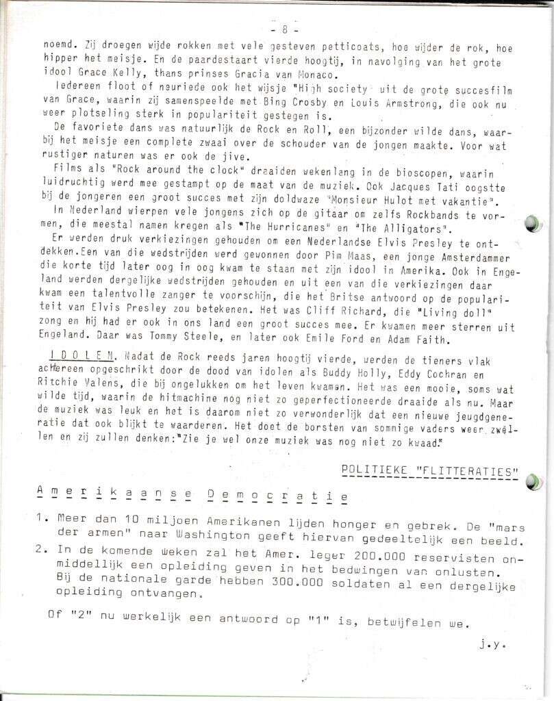 | Beschrijving: | It Fleurige Flittergat: 1968 4de jaargang nr. 19: vervolg Soosparade Rock en Roll; Elvis Presly en Bill Haley. Politieke Flitteraties: Amerikaanse Democratie. |