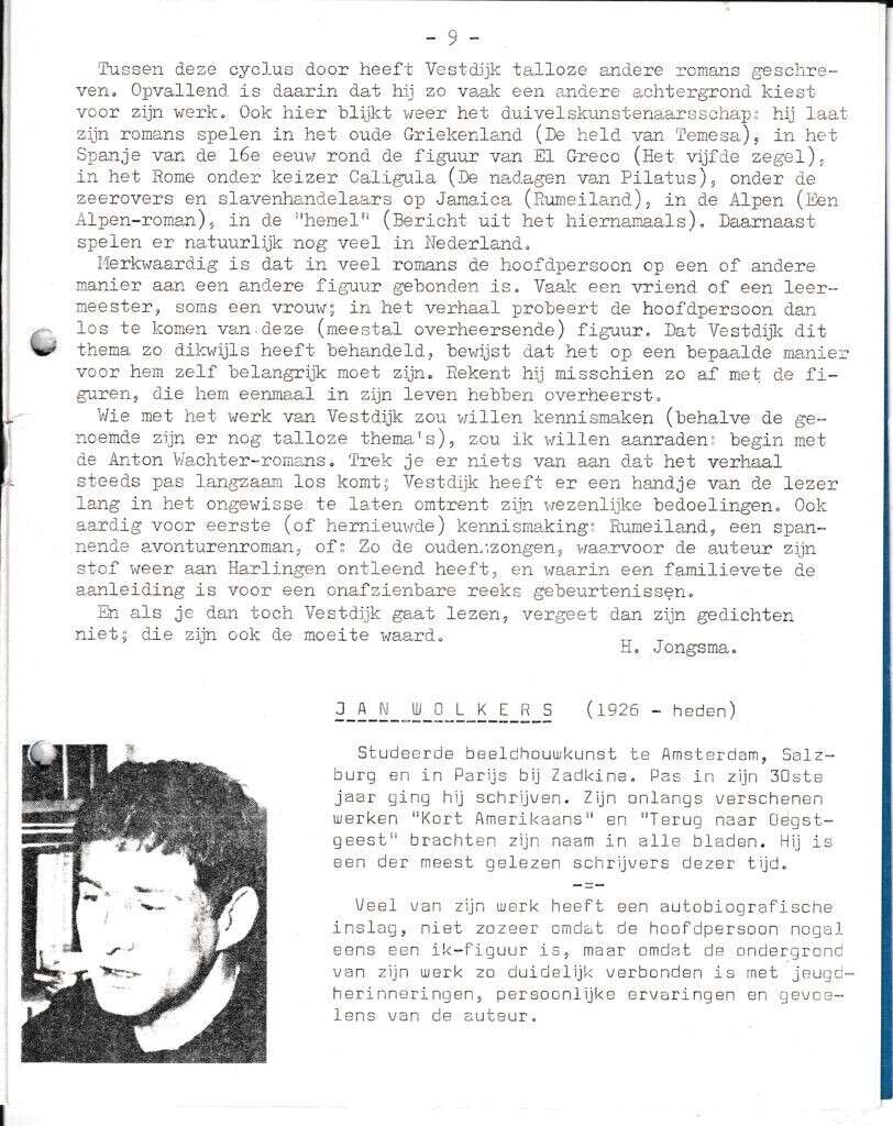 Beschrijving:It Fleurige Flittergat: 1968 4ste jaargang nr. 21: Moderne Literatuur: vervolg Simon Vestdijk. Jan Wolkers.