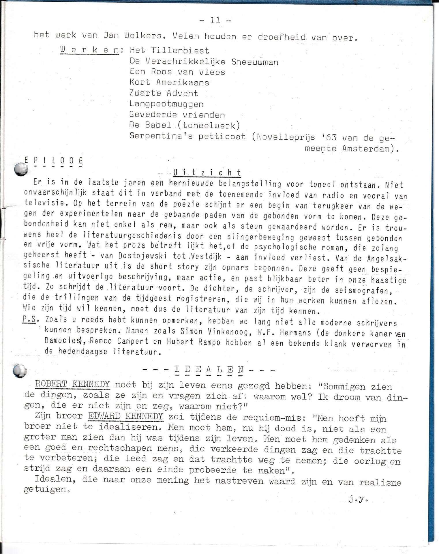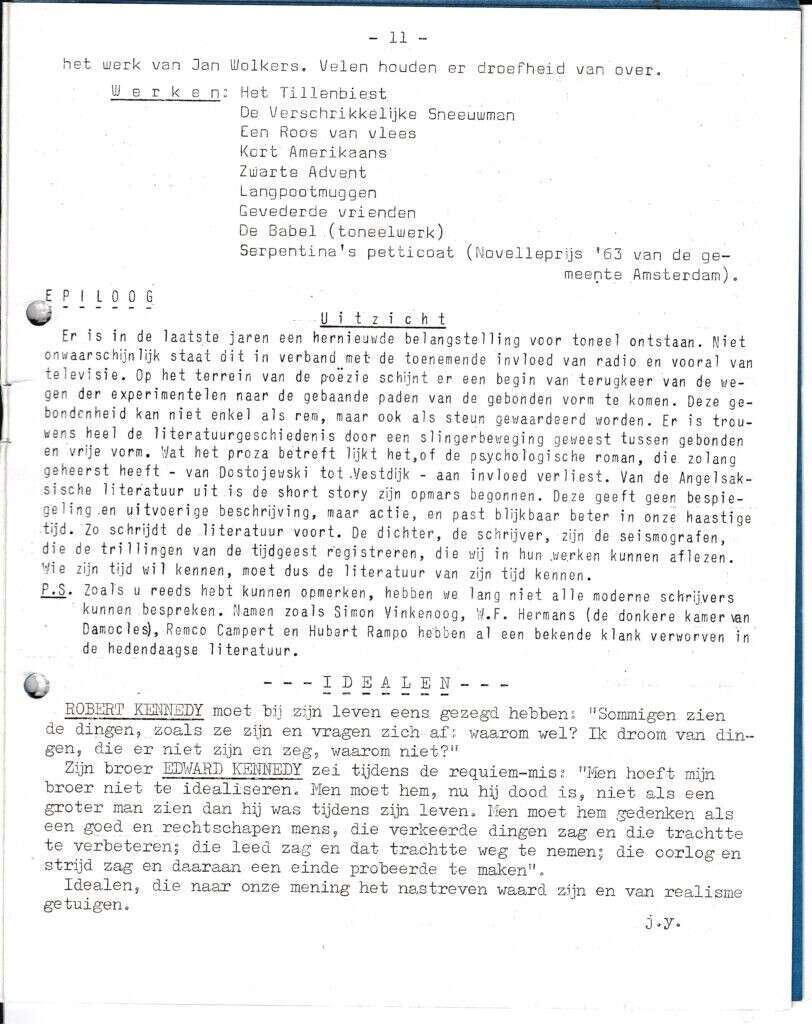 Beschrijving:It Fleurige Flittergat: 1968 4ste jaargang nr. 21: Moderne Literatuur: vervolg Jan Wolkers. Epiloog. De Kennedy's