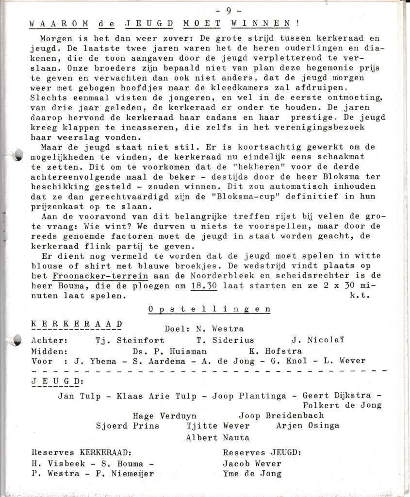 | Beschrijving: | It Fleurige Flittergat: 1968 5ste jaargang nr. 0 Voetbal: waarom de jeugd moet winnen. (Voetbalwedstrijd) |