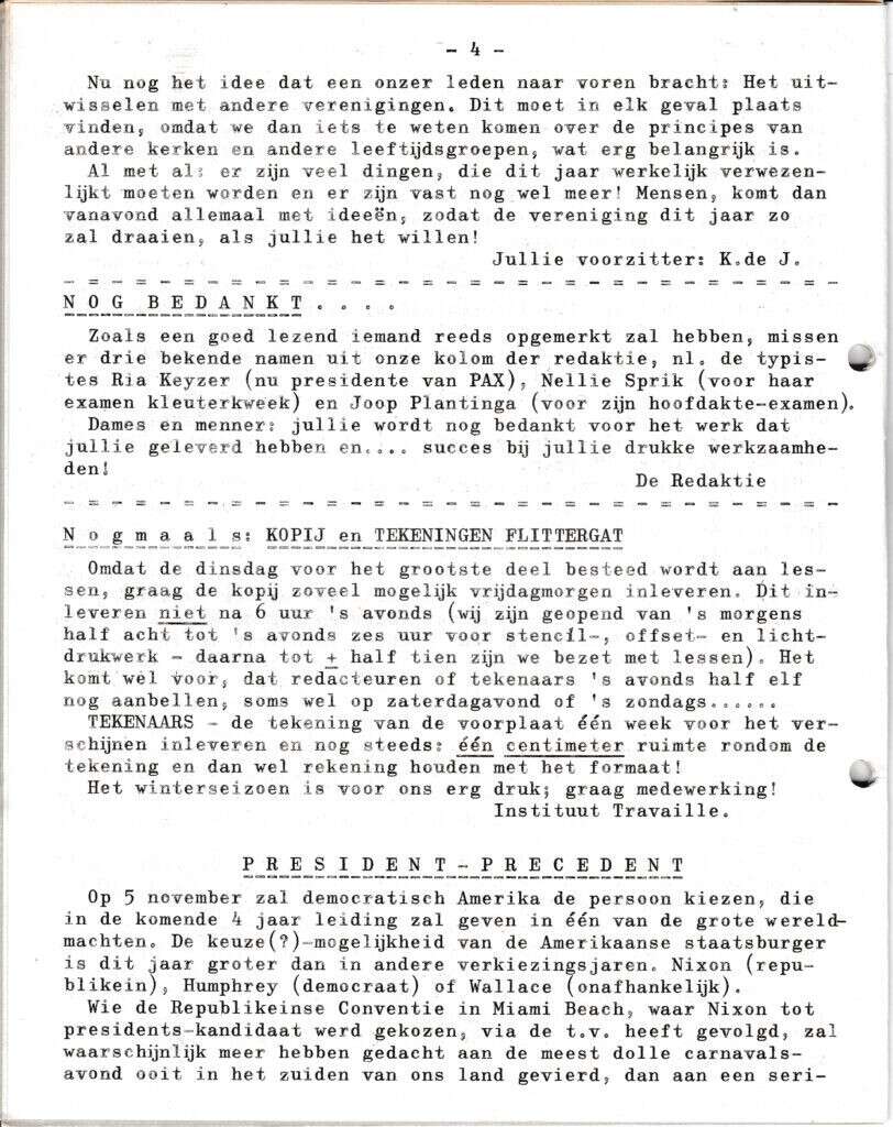 | Beschrijving: | It Fleurige Flittergat: 1968 5ste jaargang nr. 2: vervolg Verenigingsnieuws; ICHTUS. Bedankt redactueren. Kopij. Verkiezingen U.S.A: Nixon of? [Lees meer] |