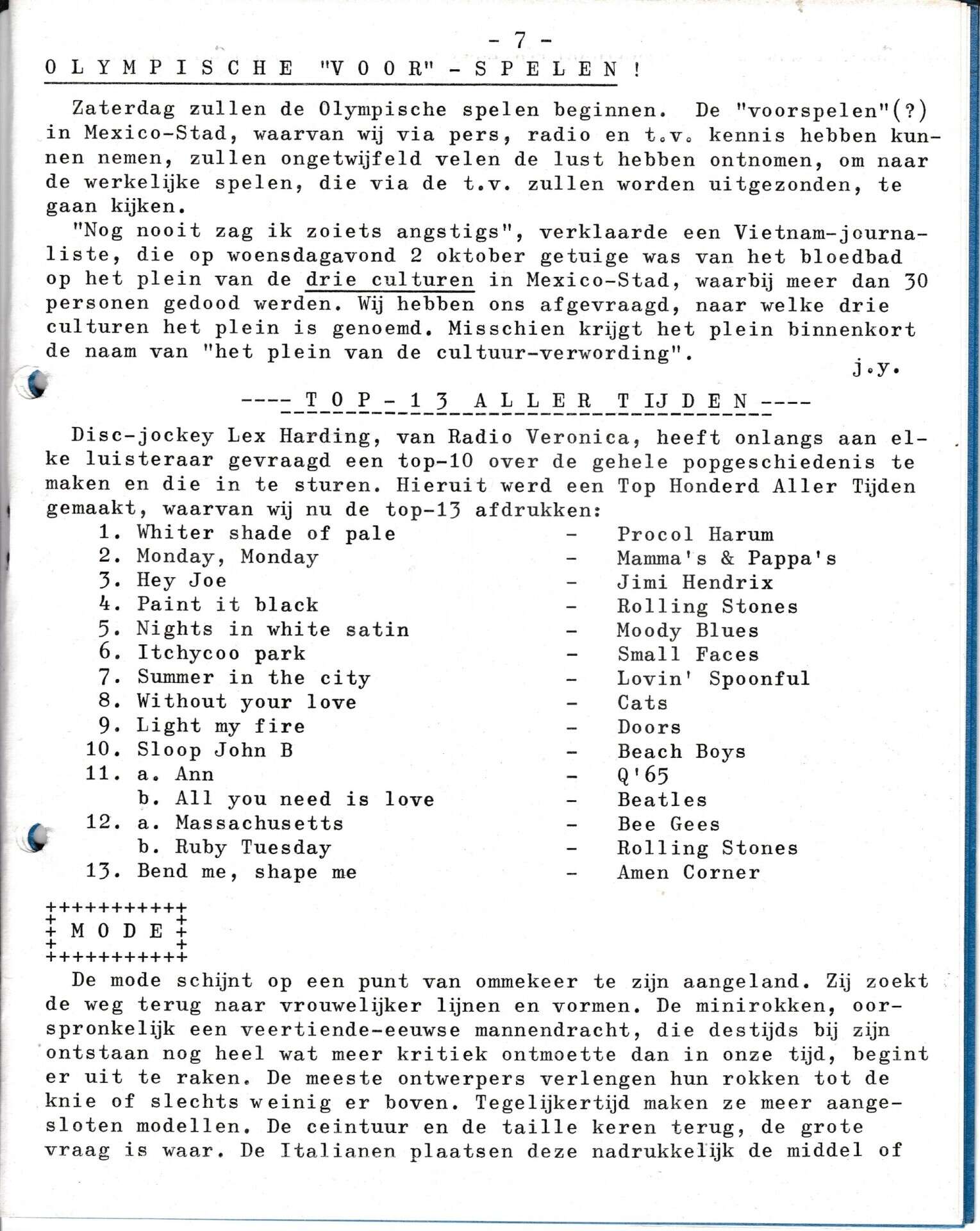Beschrijving:It Fleurige Flittergat: 1968 5ste jaargang nr. 3: Bloedbad Mexico city. Soosparade top 13 aller tijden van Lex Harding. Mode.