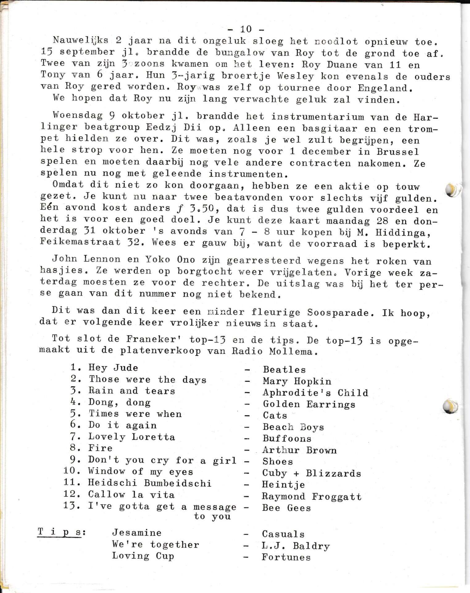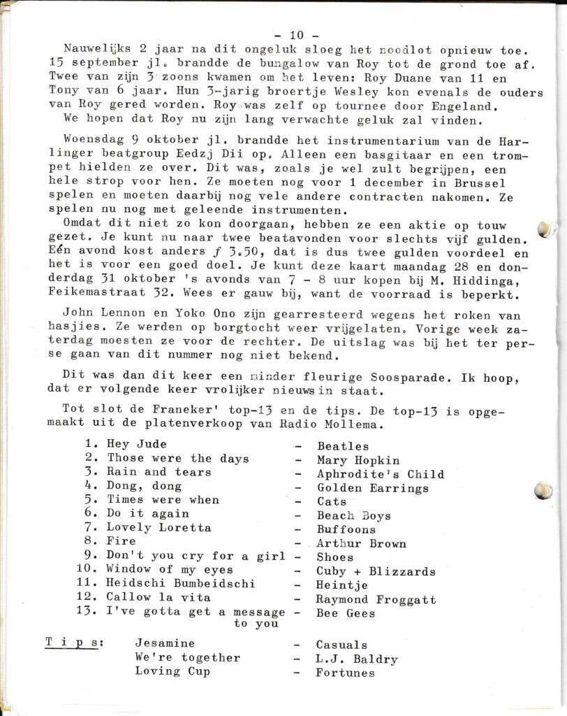 | Beschrijving: | It Fleurige Flittergat: 1968 5ste jaargang nr. 4: vervolg Soosparade: Roy Orbison, Instrumentarium van haringer beatgroep Eedzj Dii brand af, John Lennon en Yoko Ono gearresteerd, Franeker top 13. |