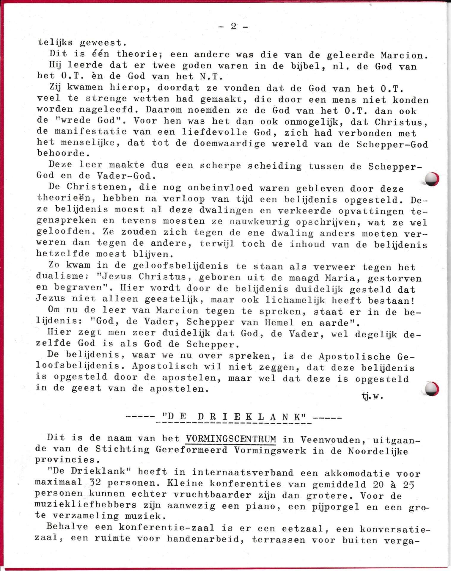 | Beschrijving: | It Fleurige Flittergat: 1968 5ste jaargang nr. 5: Vervolg Redactioneel: Onze geloofsbeleidenis. "De Drieklank" vormingscentrum in Veenwouden. |