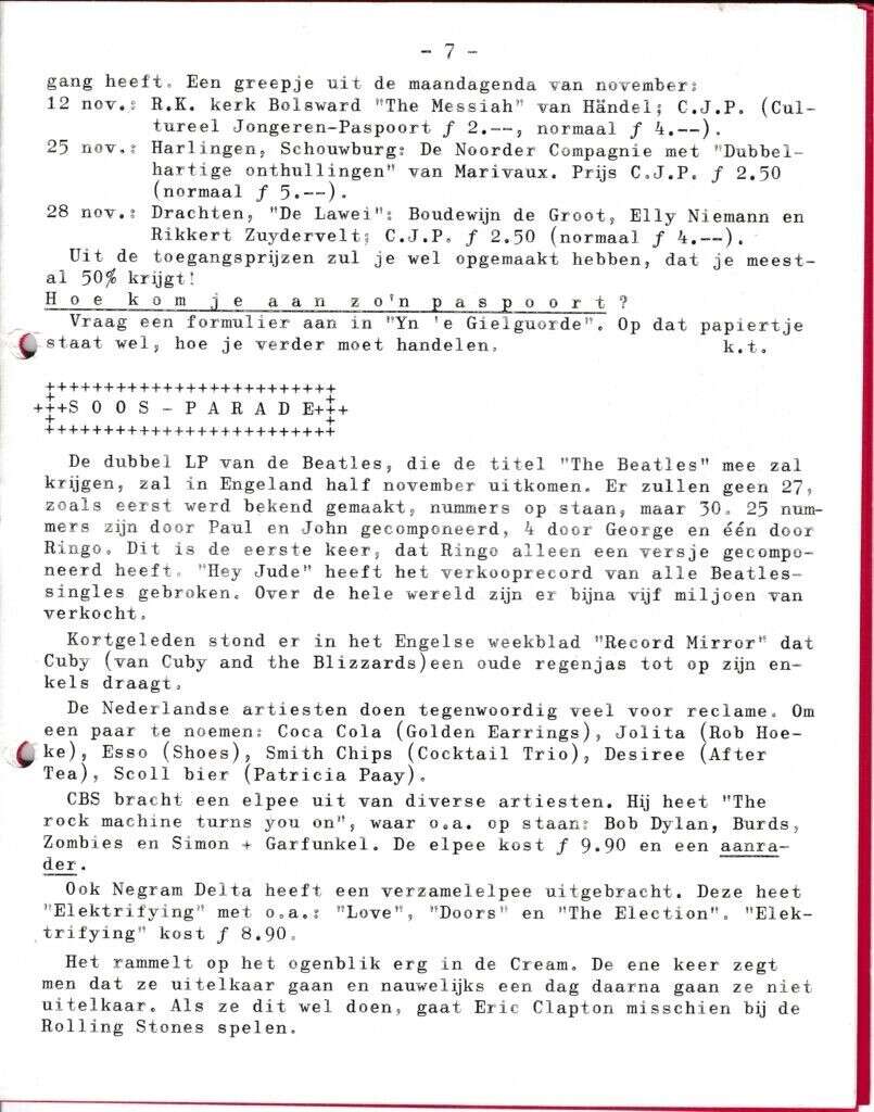 | Beschrijving: | It Fleurige Flittergat: 1968 5ste jaargang nr. 5: Vervolg Cultureel jongerenpaspoort. Soosparade |