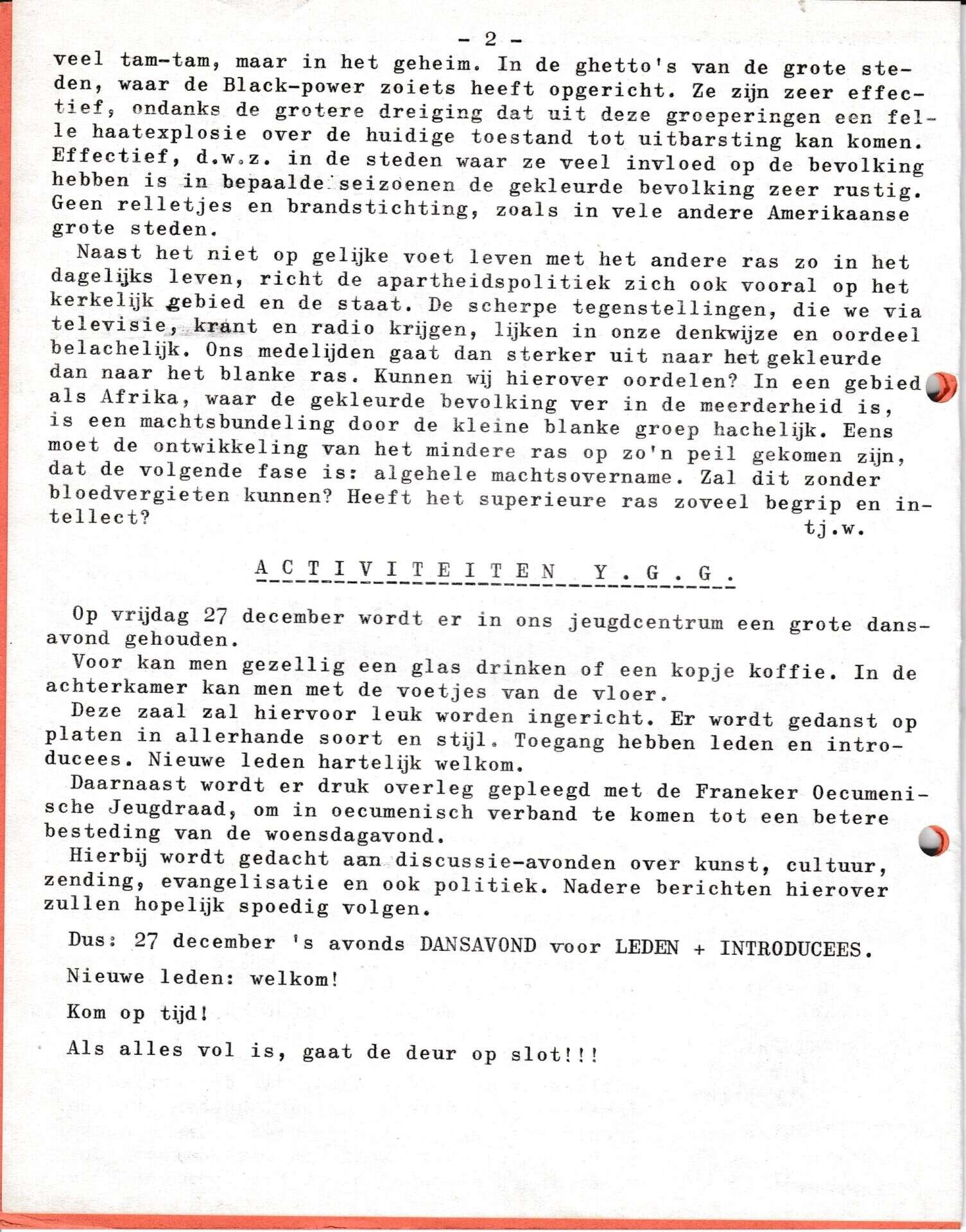 Beschrijving:It Fleurige Flittergat: 1968 5ste jaargang nr. 8: vervolg Redactioneel: Rassengelijkheid. Activiteiten "Yn'e Gielguorde"