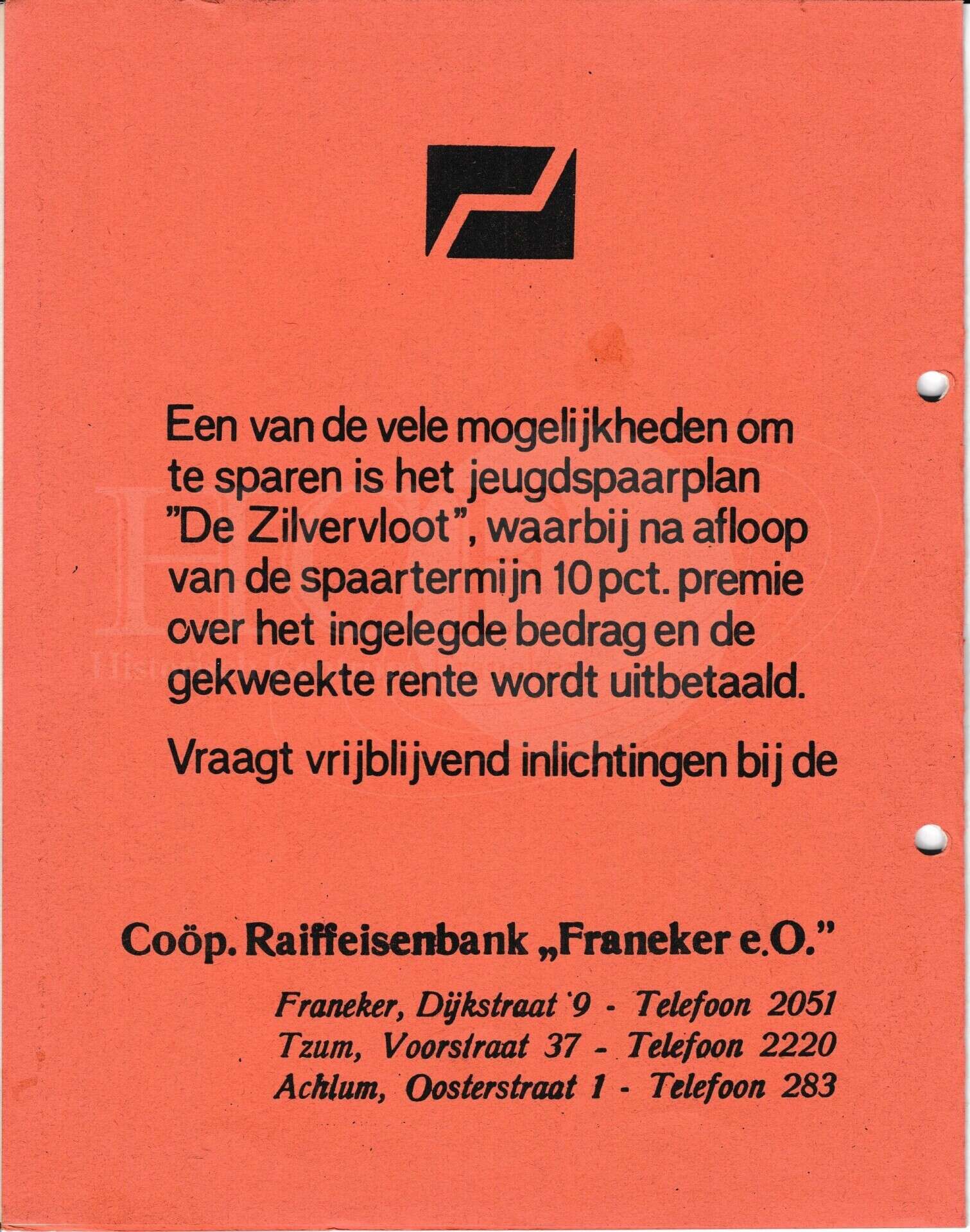 Beschrijving:It Fleurige Flittergat: 1968 5ste jaargang nr. 8: Coöperatieve Boerenleenbank Franeker, Zilvervloot sparen