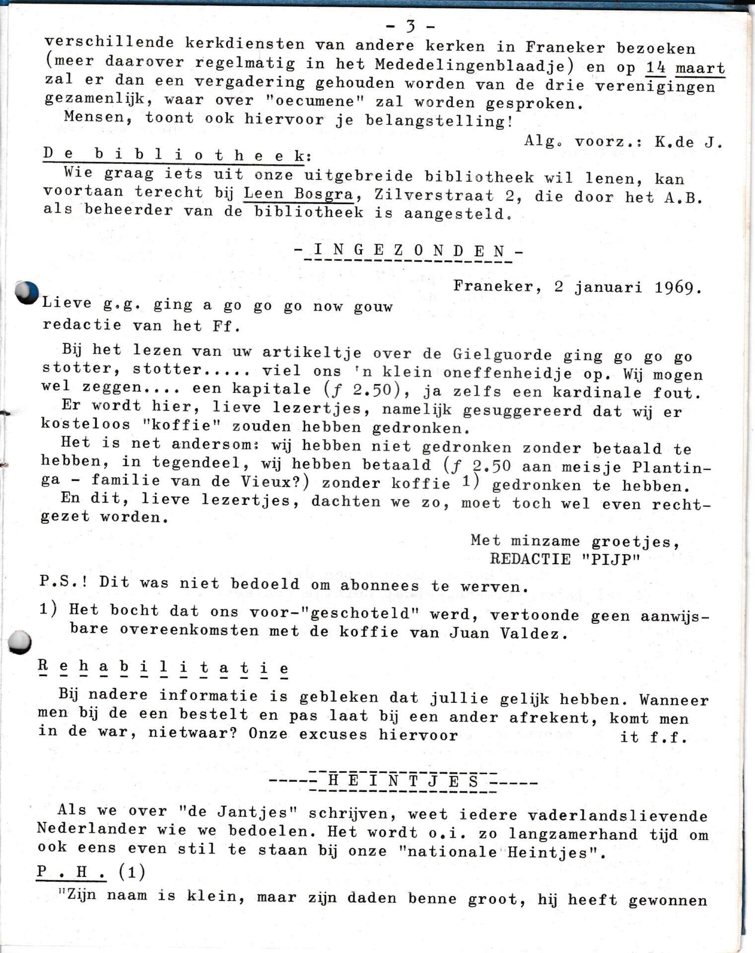 | Beschrijving: | It Fleurige Flittergat: 1969 5ste jaargang nr. 10: Ingezonden. 3 Heintjes. |