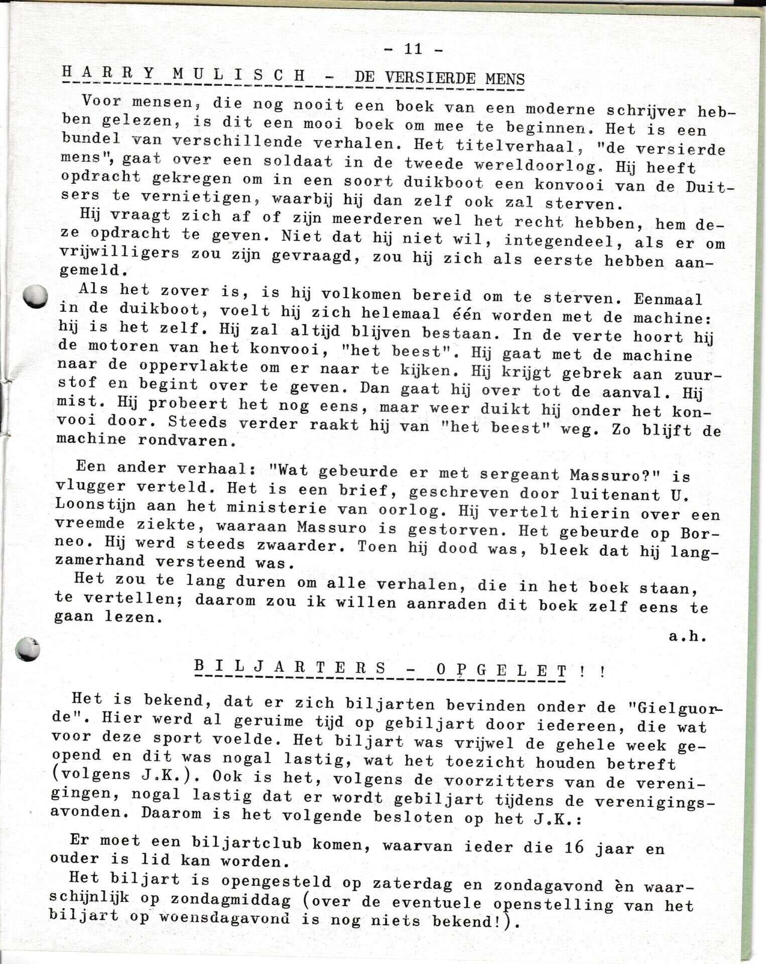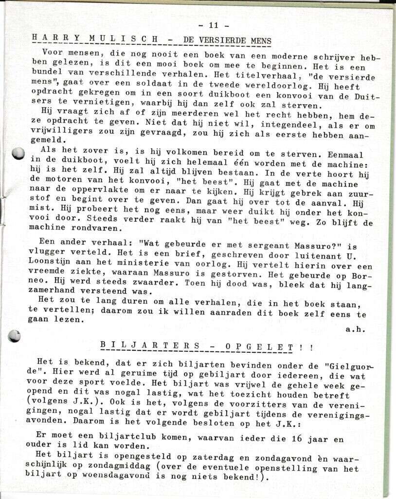 | Beschrijving: | It Fleurige Flittergat: 1969 5ste jaargang nr. 11: Harry Mulisch. Biljard Club |