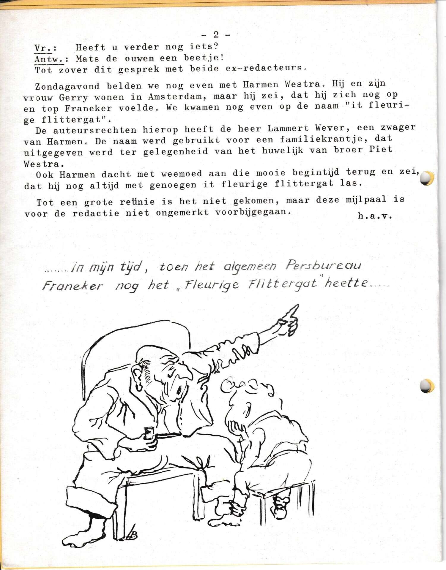 | Beschrijving: | It Fleurige Flittergat: 1969 5de jaargang nr. 14: vervolg 100ste Fleurige Flittergat |