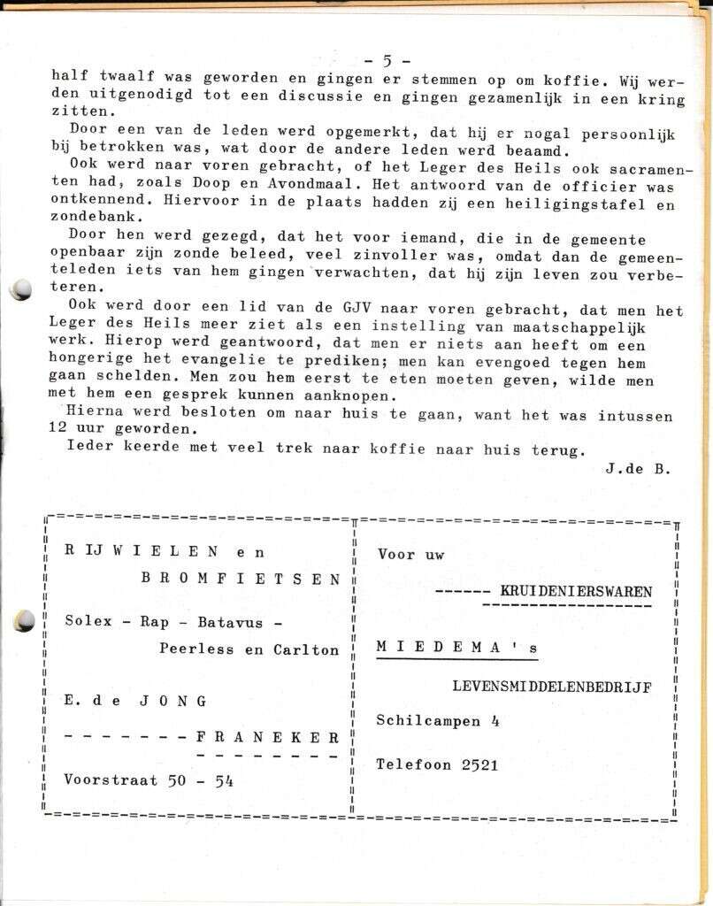 Beschrijving:It Fleurige Flittergat: 1969 5de jaargang nr. 14:vervolg Kerktournee; Leger des Heils. Reklame; E.de Jong rijwielen en bromfietsen Voorstraat 50-54, Miedema Kruidenier Schilcampen 4