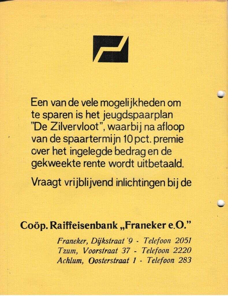| Beschrijving: | It Fleurige Flittergat: 1969 5de jaargang nr. 14: Coöperatieve Boerenleenbank Franeker, Zilvervloot sparen |
