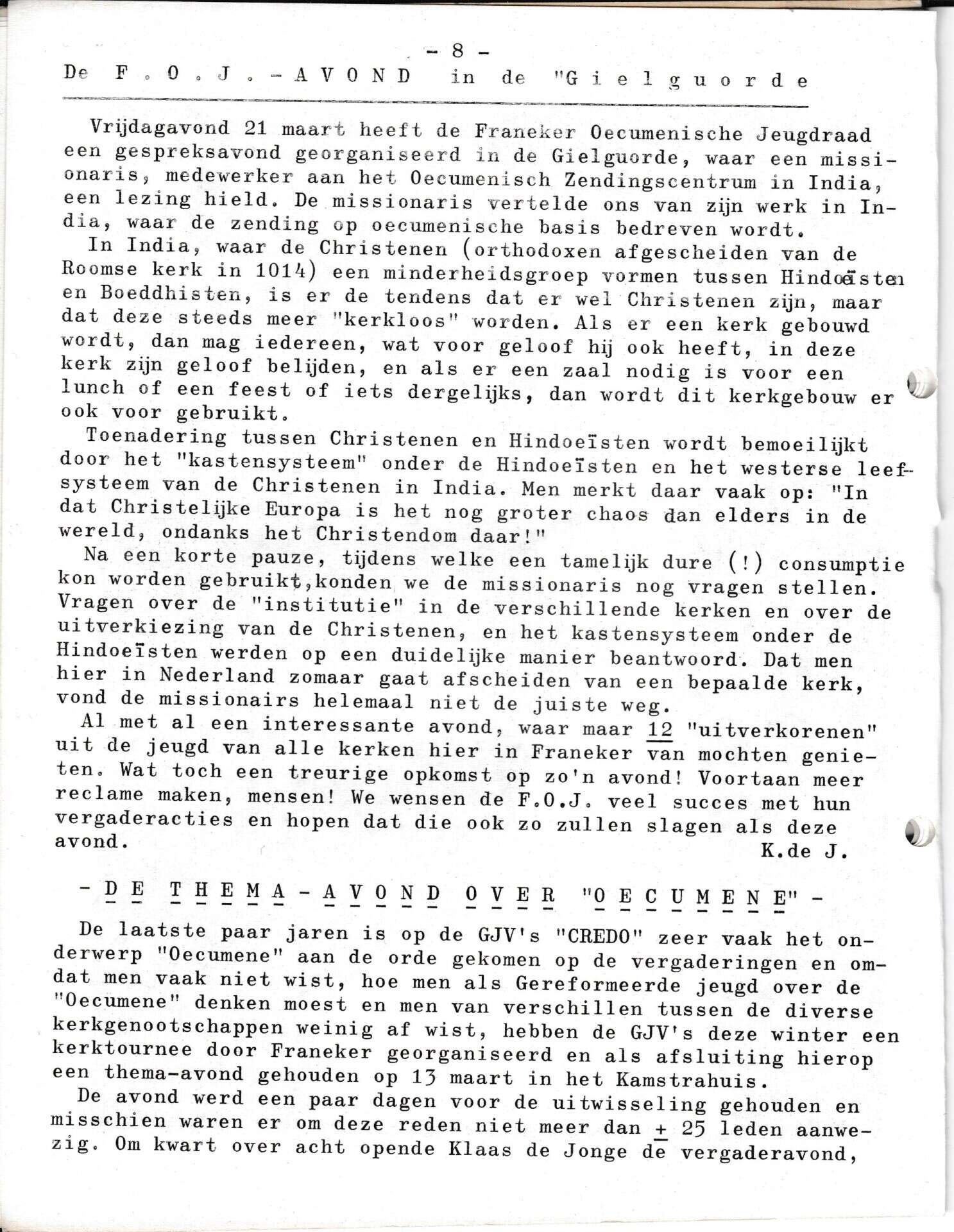 | Beschrijving: | It Fleurige Flittergat: 1969 5de jaargang nr. 15: F.O.J avond in "Yn'e Gielguorde". Thema avond G.J.V "CREDO" oecumene |