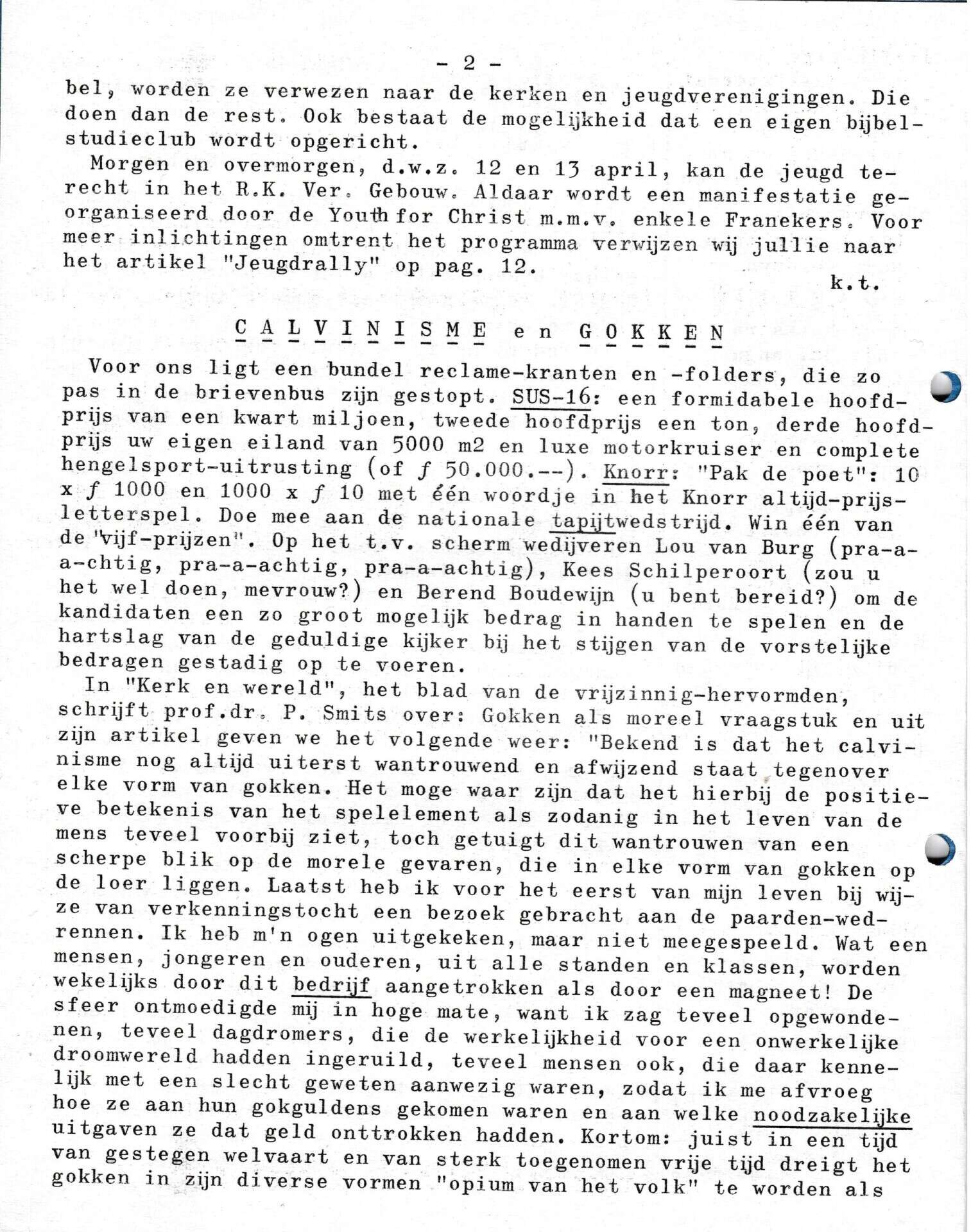 | Beschrijving: | It Fleurige Flittergat: 1969 5de jaargang nr. 16: vervolg Youth For Christ. Calvinisme en gokken. |