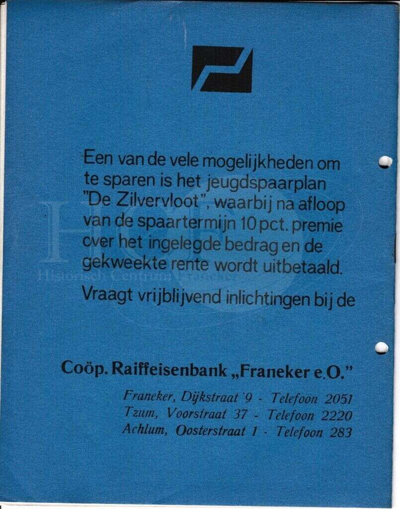| Beschrijving: | It Fleurige Flittergat: 1969 5de jaargang nr. 16: Coöperatieve Boerenleenbank Franeker, Zilvervloot sparen |