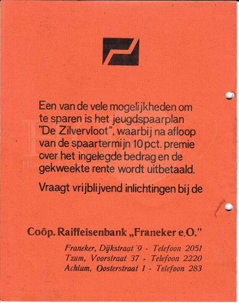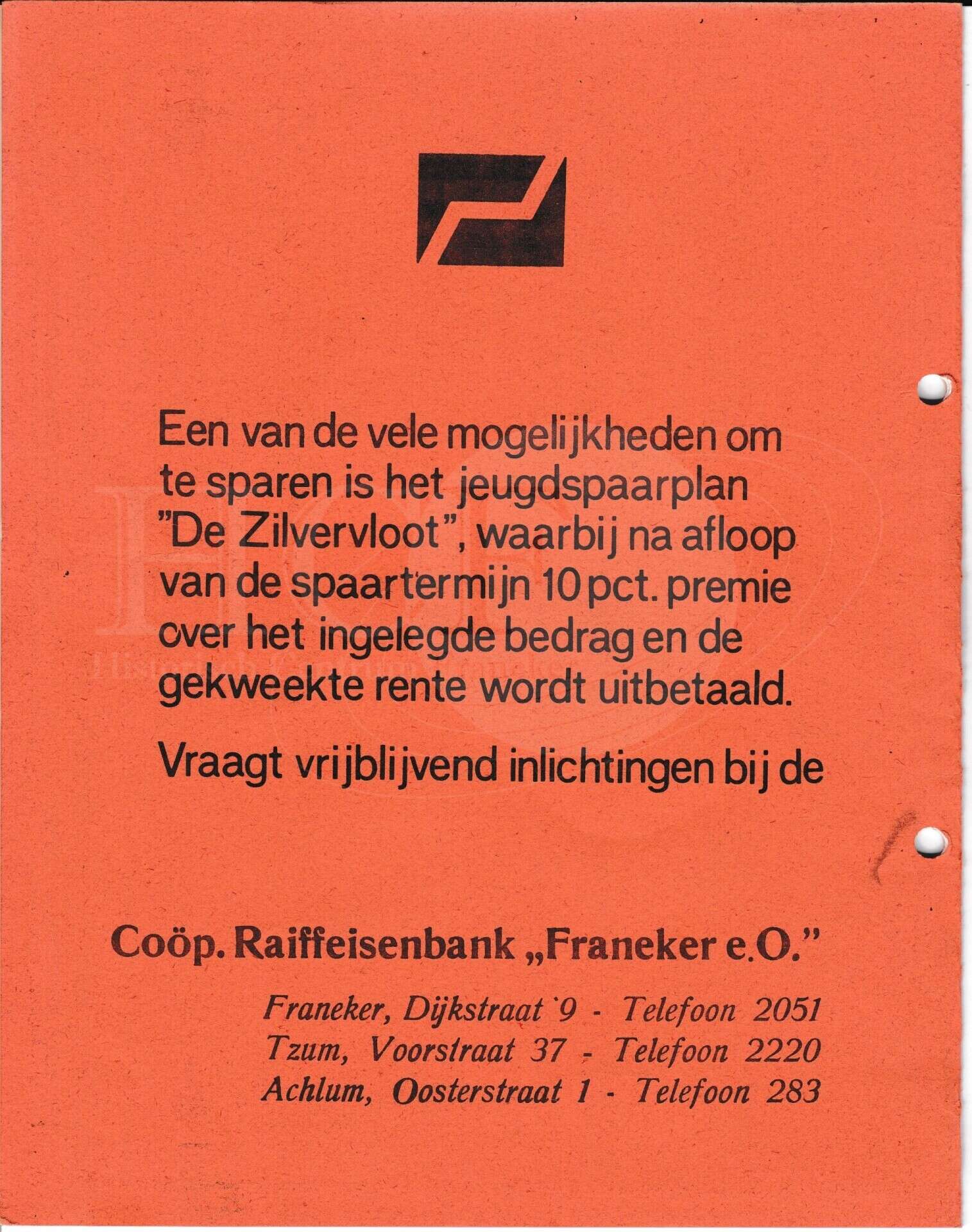 | Beschrijving: | It Fleurige Flittergat: 1969 5de jaargang nr. 17: Coöperatieve Boerenleenbank Franeker, Zilvervloot sparen |