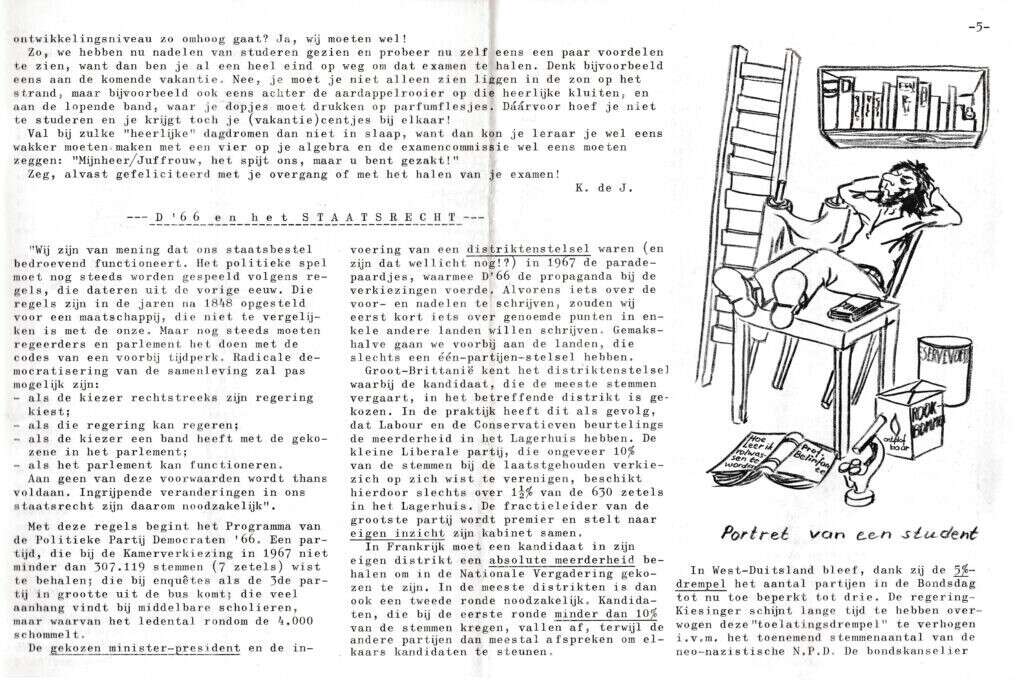 | Beschrijving: | It Fleurige Flittergat: 1969 5de jaargang nr. 19: vervolg Examen; Overgang en daarna? D'66 en het Staatsrecht. |