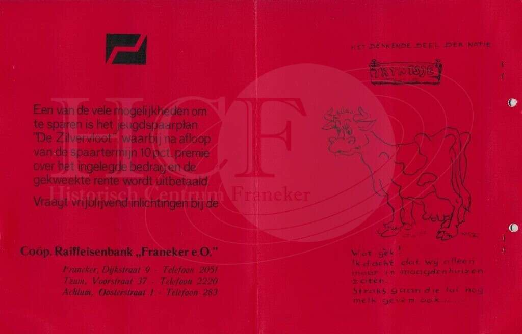 | Beschrijving: | It Fleurige Flittergat: 1969 5de jaargang nr. 19: Coöperatieve Boerenleenbank Franeker, Zilvervloot sparen . Spotprent. |