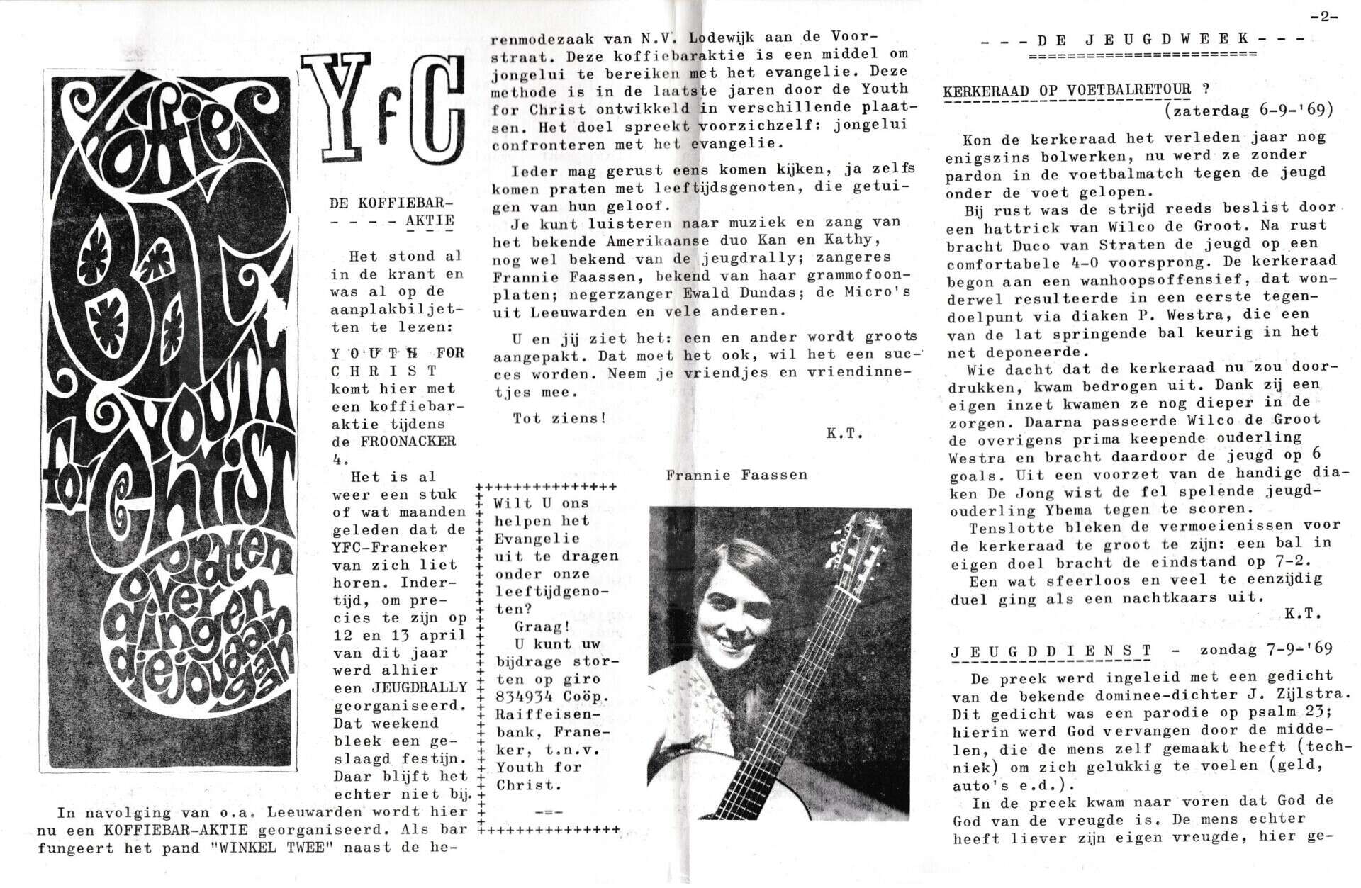 Beschrijving:It Fleurige Flittergat: 1969 6de jaargang nr. 1: Youth For Christ koffiebar actie. De Jeugdweek. Jeugddienst.