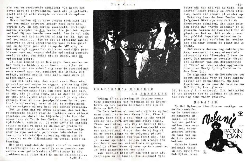 Beschrijving:It Fleurige Flittergat: 1969 6de jaargang nr. 2: vervolg Commentaar op "Het geloof in deze tijd"( uit Jong Gereformeerd.) Soosparade: B.Z.N en de Cats in Franeker. Melanie