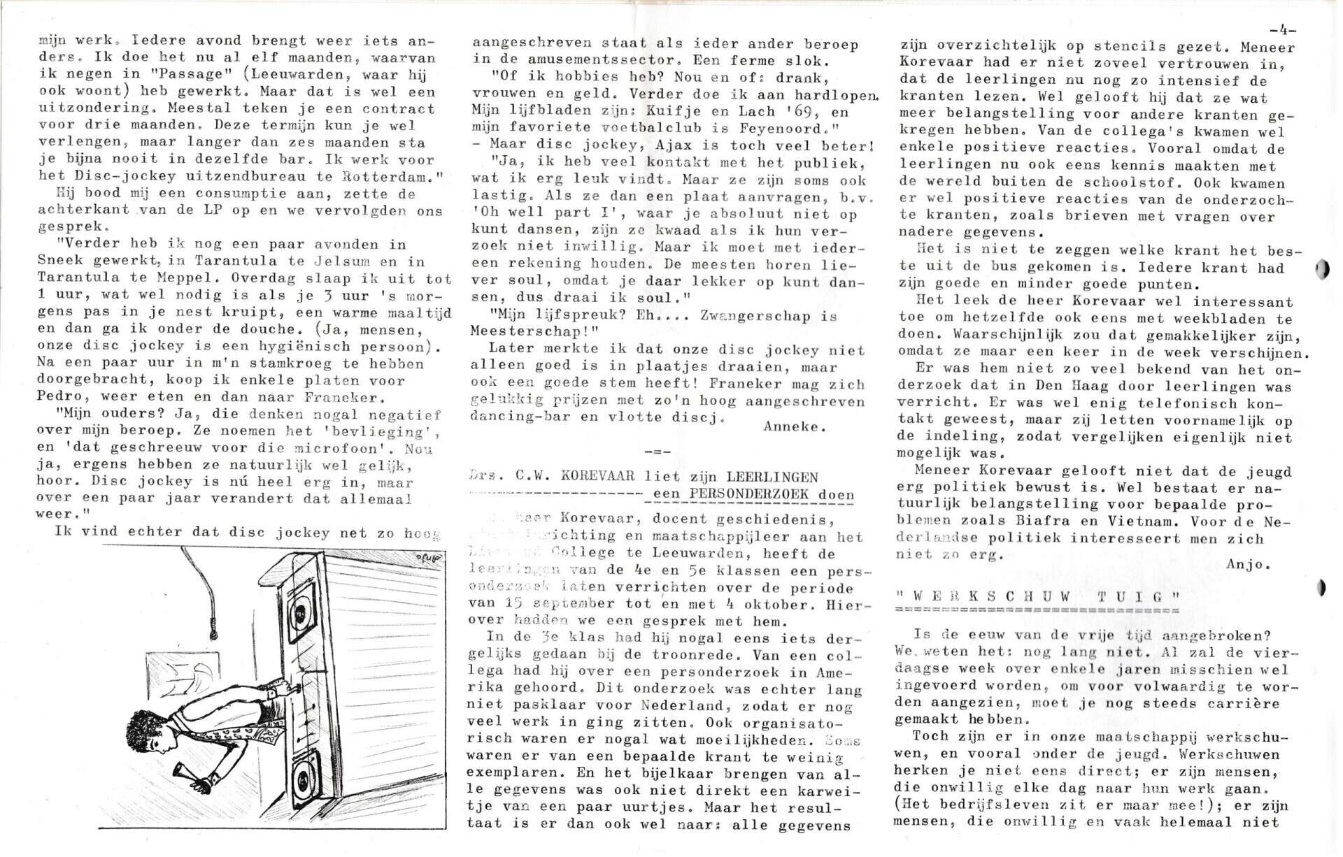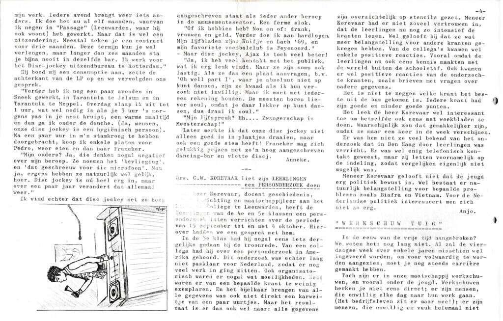| Beschrijving: | It Fleurige Flittergat: 1969 6de jaargang nr. 4: vervolg Disc Jockey Don Pedro. Personderzoek Drs. C.W Korevaar. "Werkschuw tuig" |
