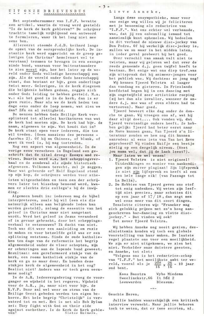 Beschrijving:It Fleurige Flittergat: 1970 6de jaargang nr. 5: Uit onze brievenbus: is de kerk de kerk gebleven?