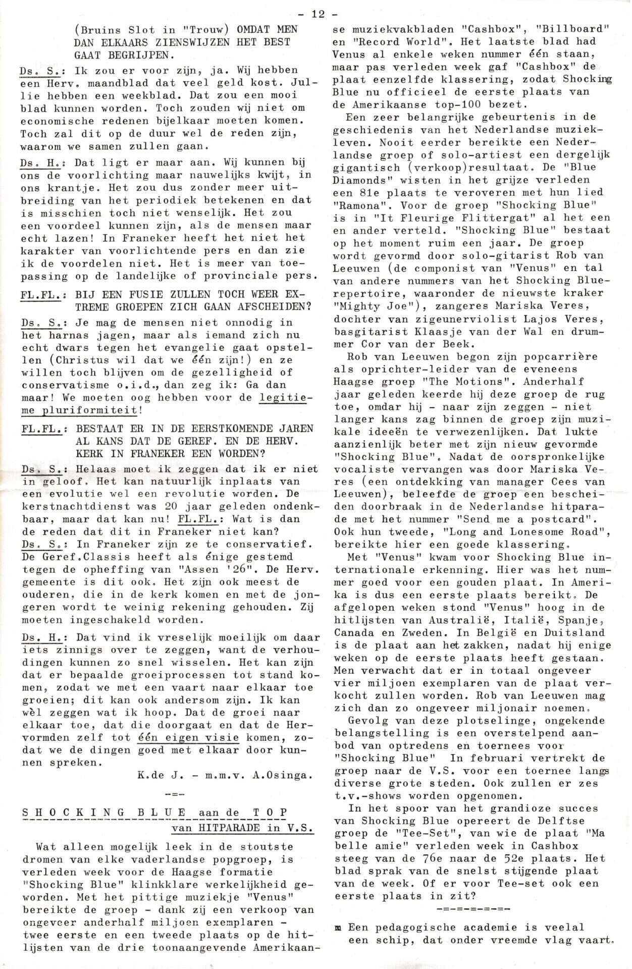 | Beschrijving: | It Fleurige Flittergat: 1970 6de jaargang nr. 5: vervolg Hervormen en gereformeerd samen, ook in Franeker? Soosparade: Shocking Blue aan de top in de hitparade in de V.S |