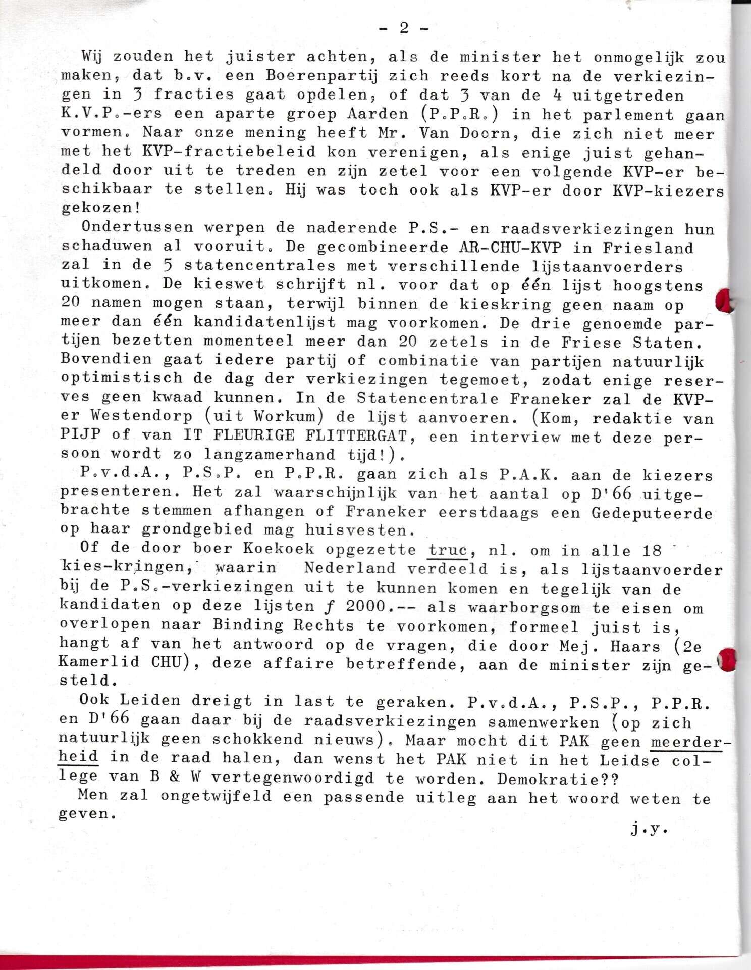 | Beschrijving: | It Fleurige Flittergat: 1970 6de jaargang nr. 6: vervolg Politieke parijen en partij politiek. |