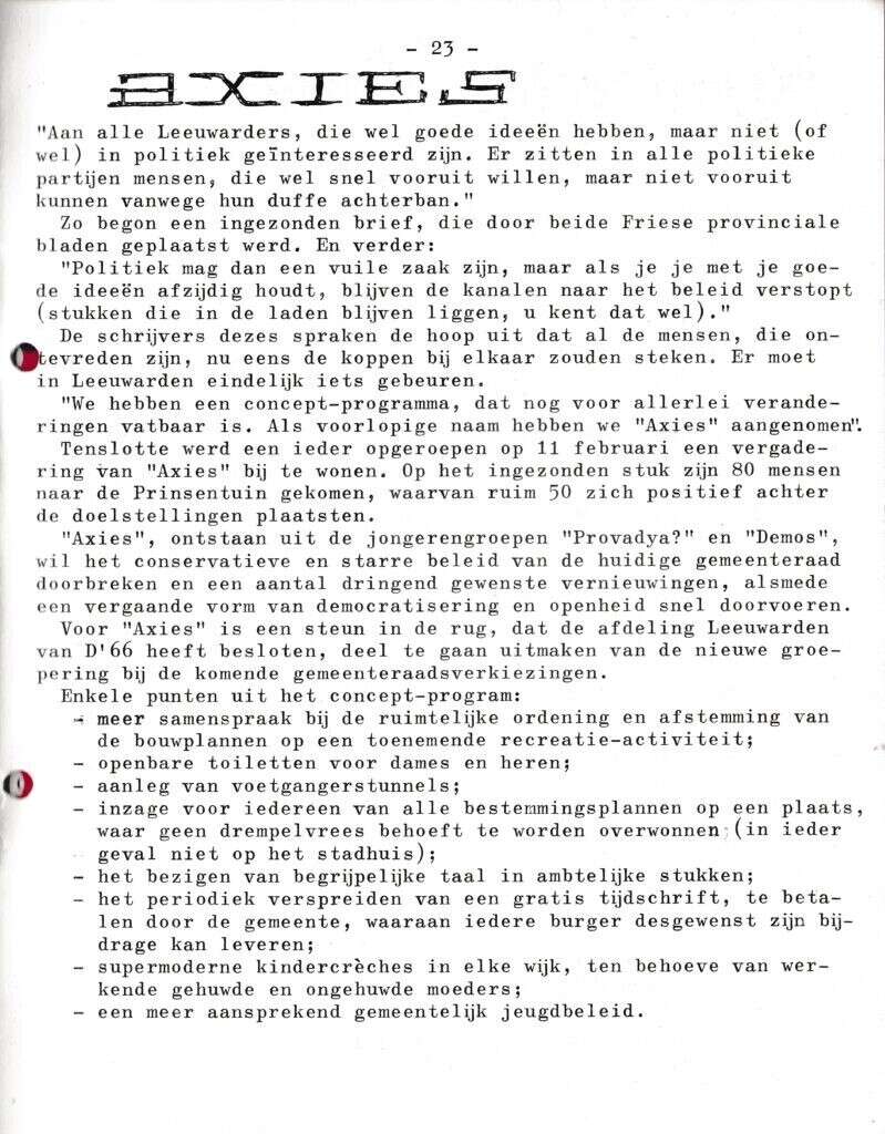 Beschrijving:It Fleurige Flittergat: 1970 6de jaargang nr. 6: Nieuwe politieke partij AXIES (Leeuwarden)