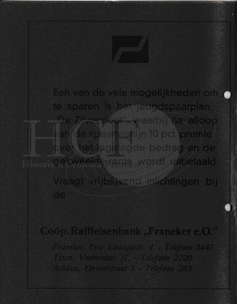 | Beschrijving: | It Fleurige Flittergat: 1970 6de jaargang nr. 7: Coöperatieve Boerenleenbank Franeker, Zilvervloot sparen. |