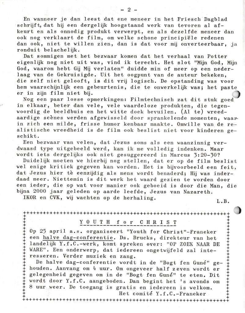 Beschrijving:It Fleurige Flittergat: 1970 6de jaargang nr. 7: vervolg "Son of Men" (Dennis Potter). Youth for Christ nieuwes.