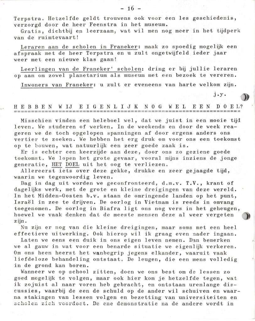 | Beschrijving: | It Fleurige Flittergat: 1970 6de jaargang nr. 7: vervolg Heropening Planetarium. Hebben we eigenlijk nog wel een doel? |