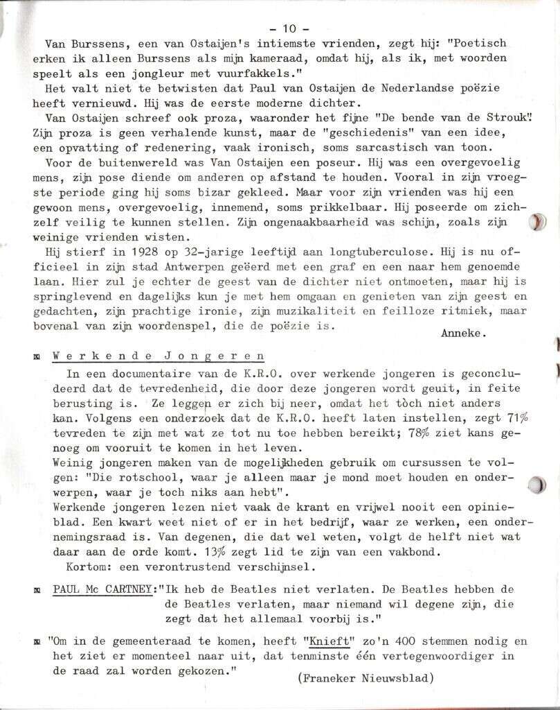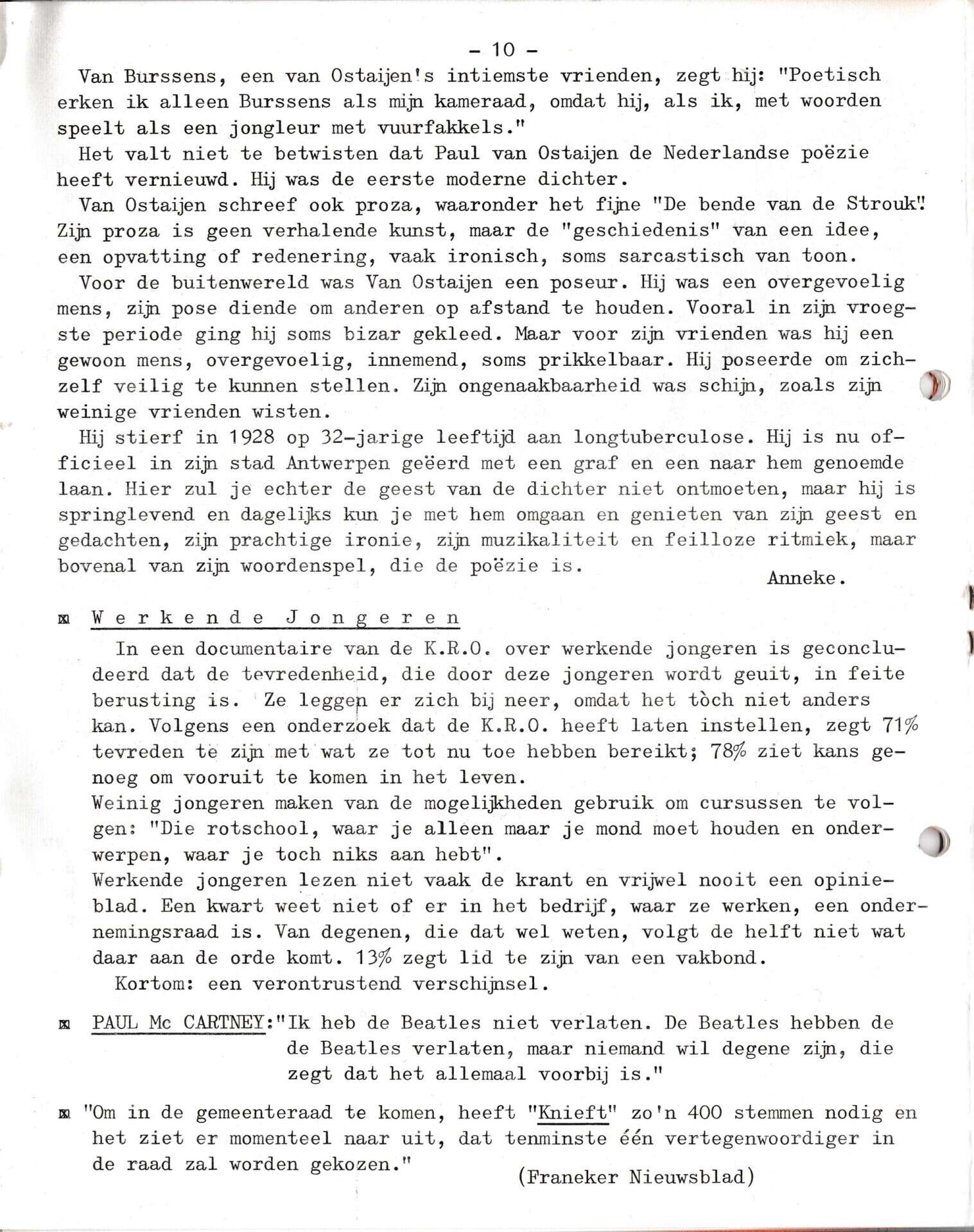 | Beschrijving: | It Fleurige Flittergat: 1970 6de jaargang nr. 8: vervolg Paul van Ostayen. Werkende jongeren. |