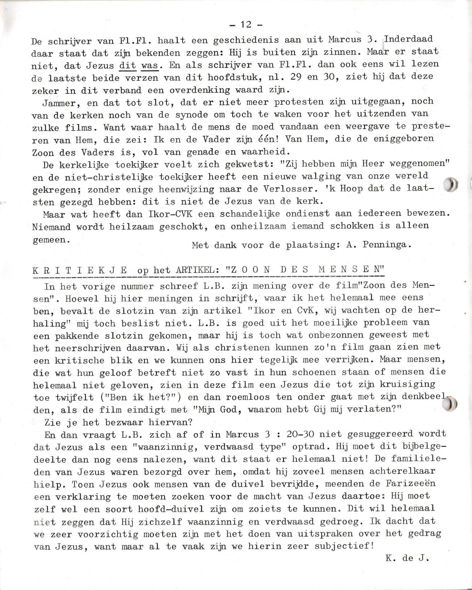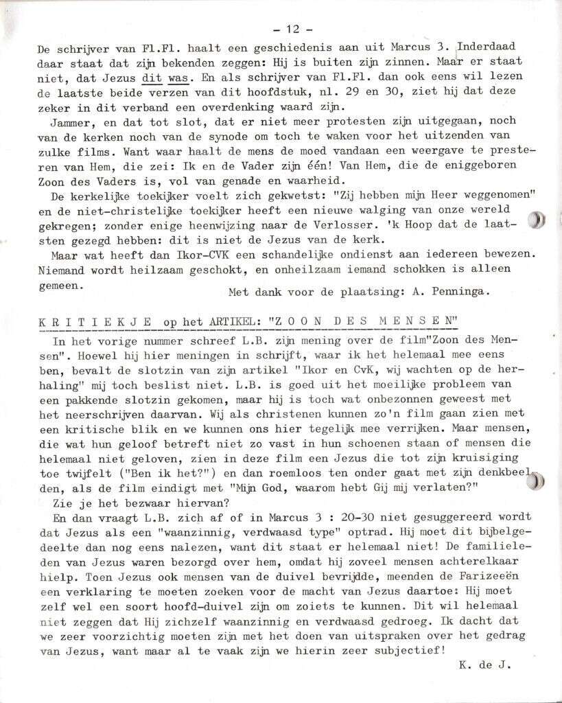 | Beschrijving: | It Fleurige Flittergat: 1970 6de jaargang nr. 8: vervolg reactie op de film "De zoon des mensen" |
