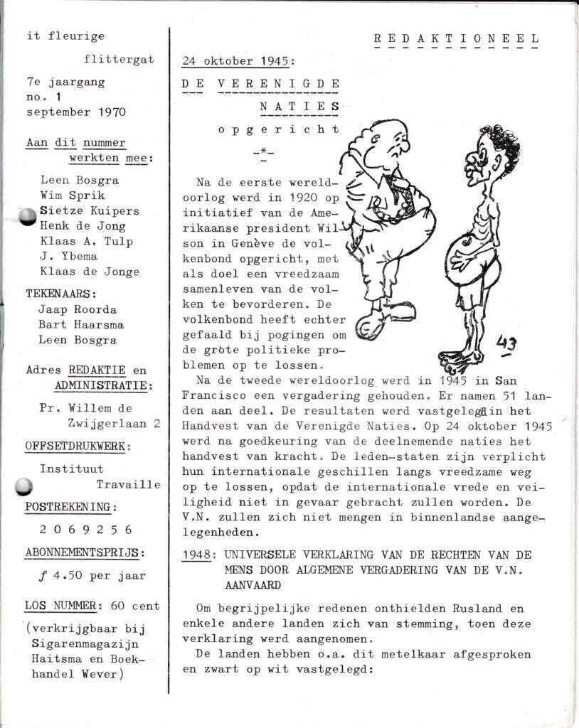 Beschrijving: | It Fleurige Flittergat: 1970 7de jaargang nr. 1: 1945 de verenigde naties opgericht. |