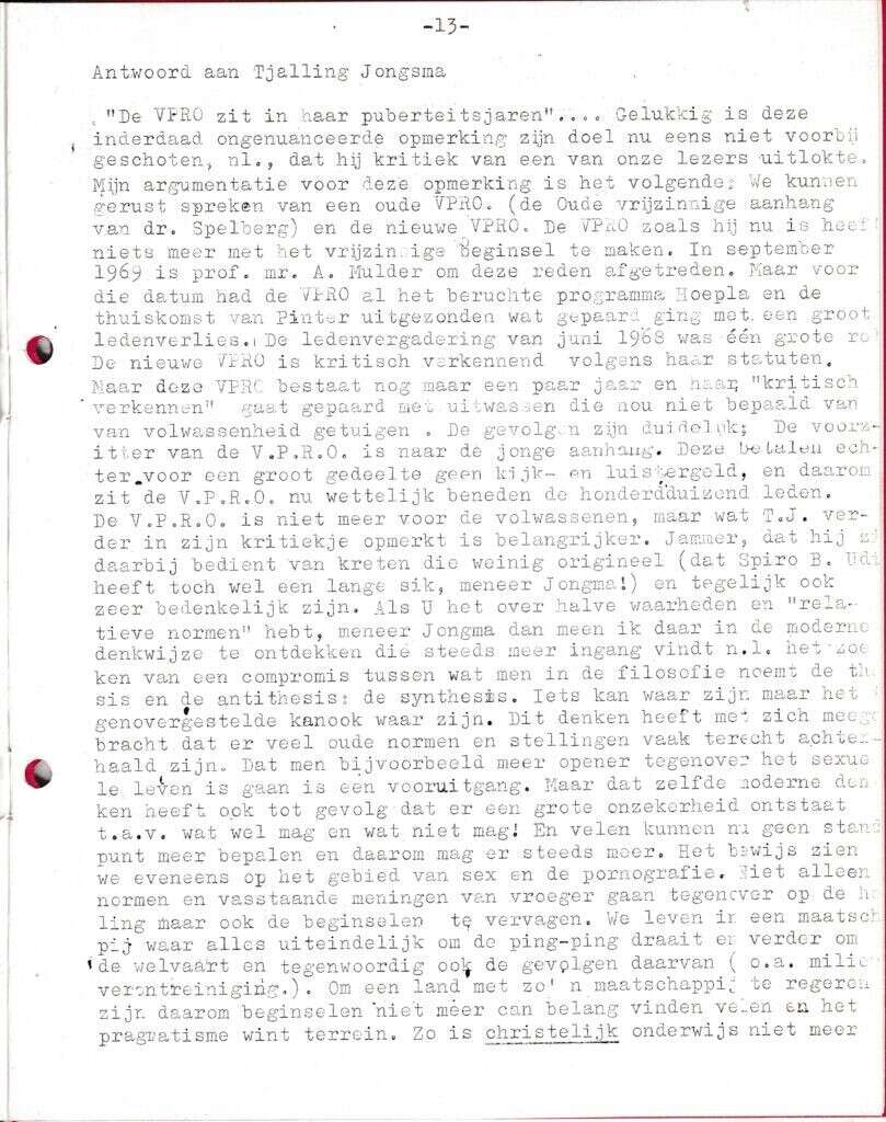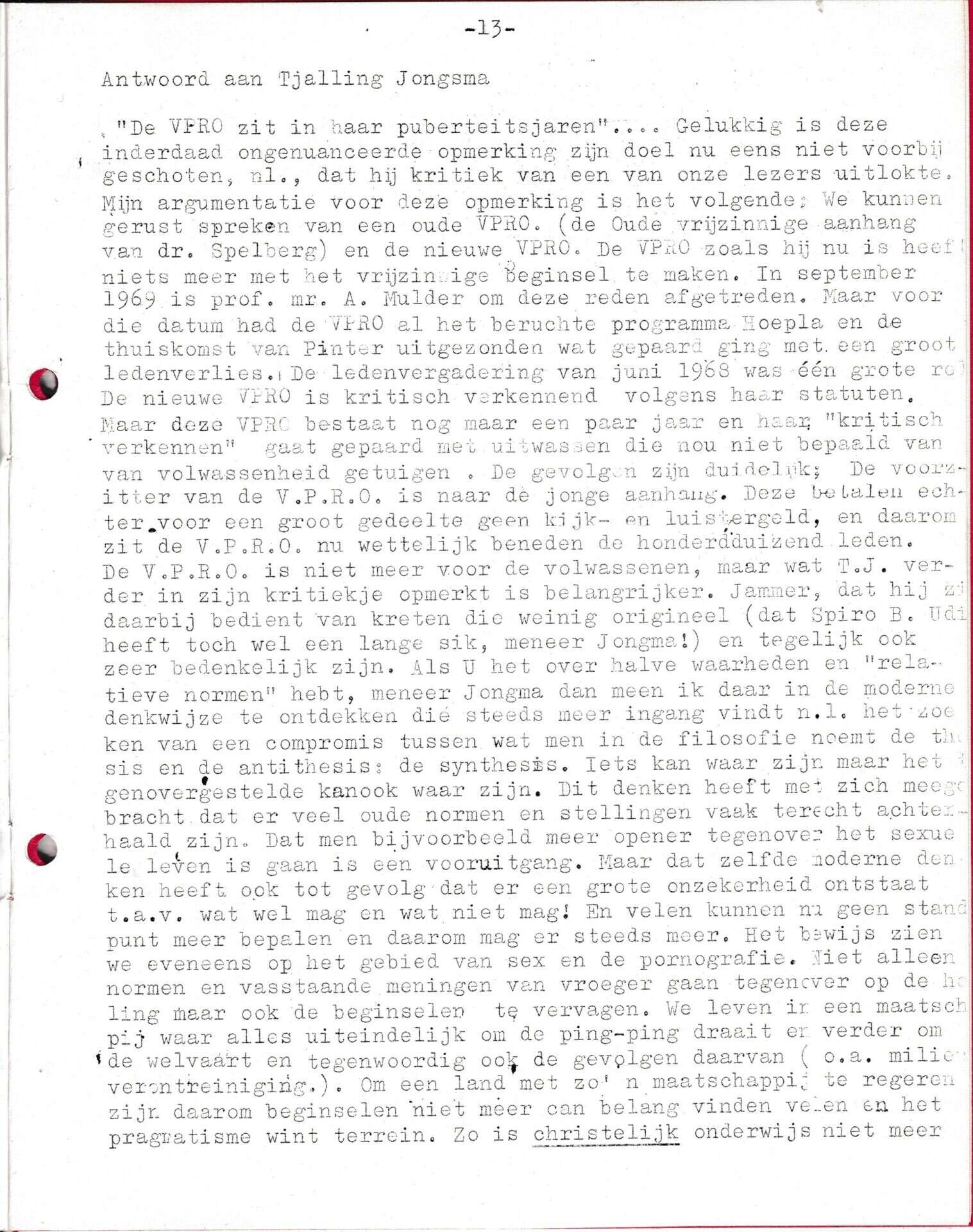 Beschrijving:It Fleurige Flittergat: 1970 7de jaargang nr. 3: Antwoord aan Tjalling Jongsma. Ingezonden: De VPRO is zo gek nog niet