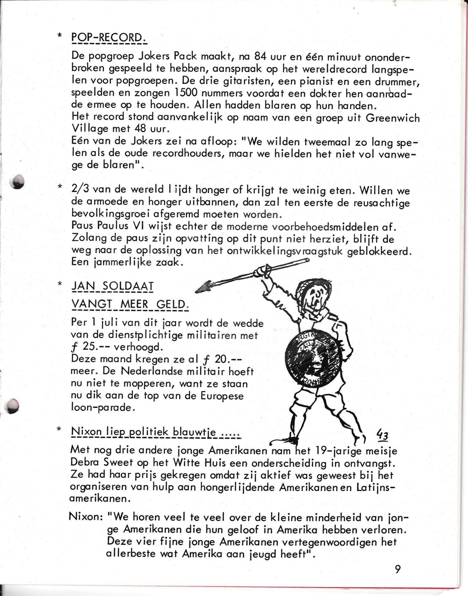 Beschrijving: | It Fleurige Flittergat: 1971 7de jaargang nr. 4: weetjes: POP record. Jan Soldaat vangt meer geld. Nixon liep een politiek blauwtje |