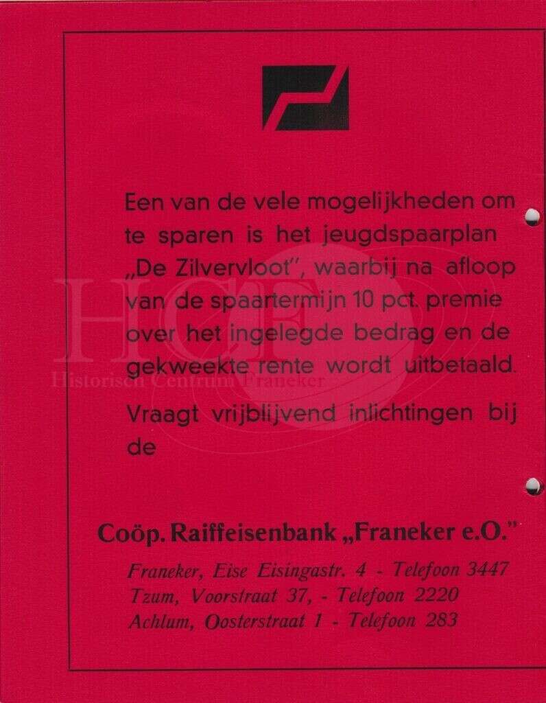 Beschrijving: | It Fleurige Flittergat: 1971 7de jaargang nr. 8: Coöperatieve Boerenleenbank Franeker, Zilvervloot sparen. |