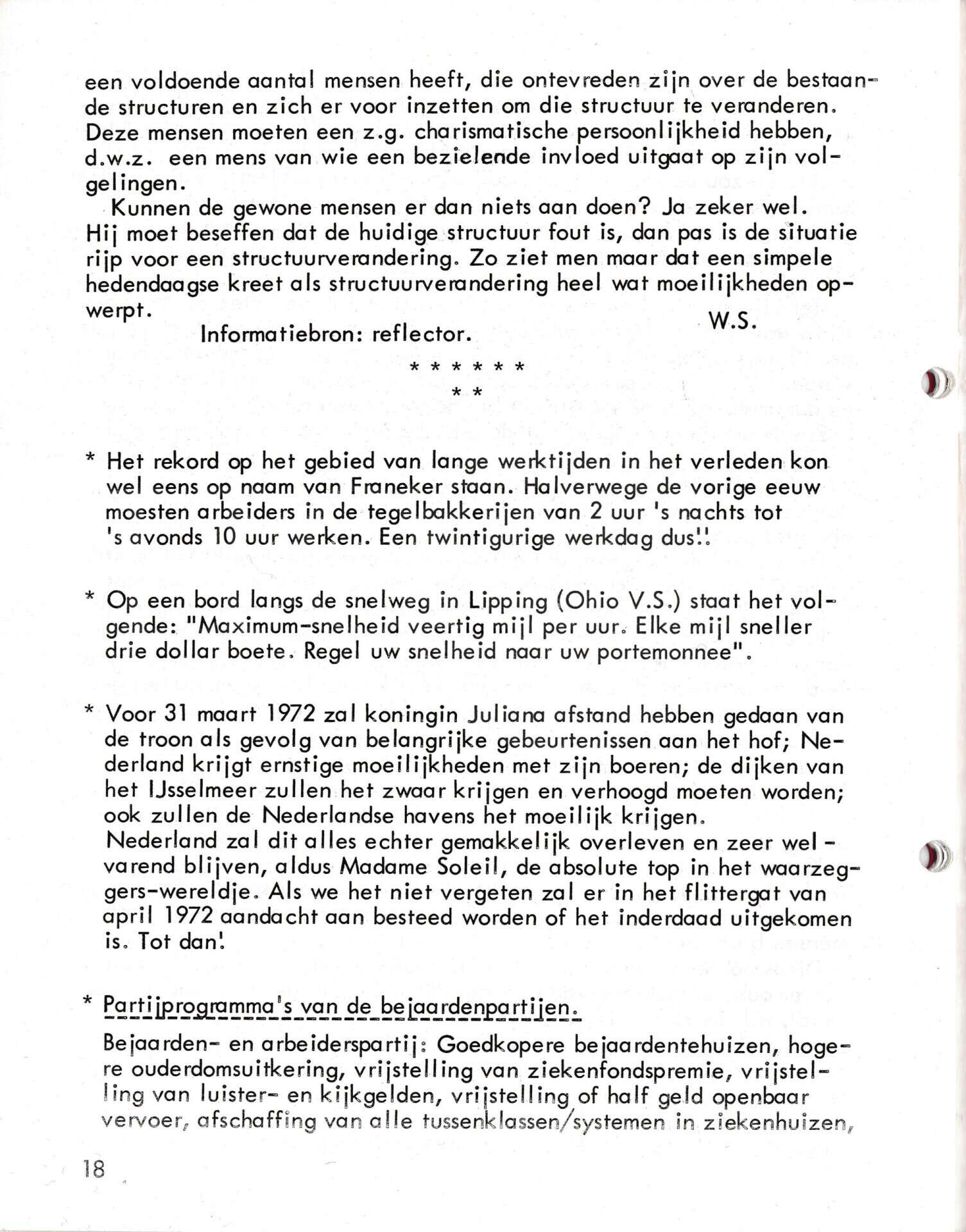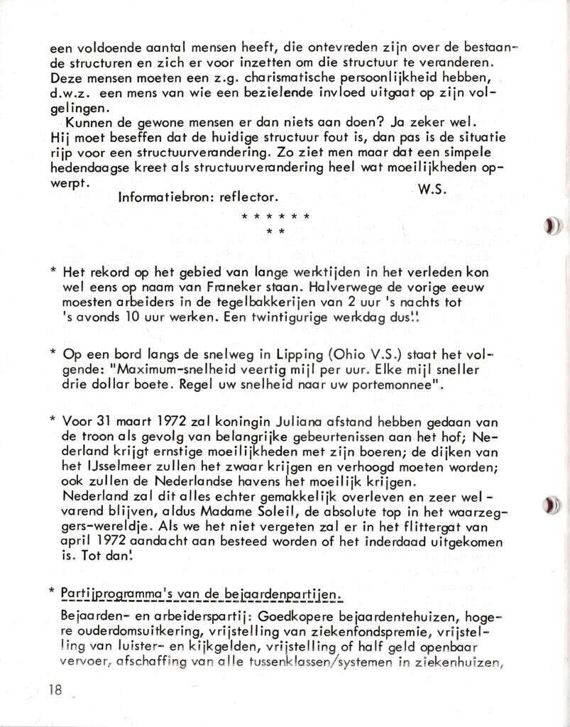 Beschrijving:It Fleurige Flittergat: 1971 7de jaargang nr. 8: vervolg Mensen en structuren. Flitters