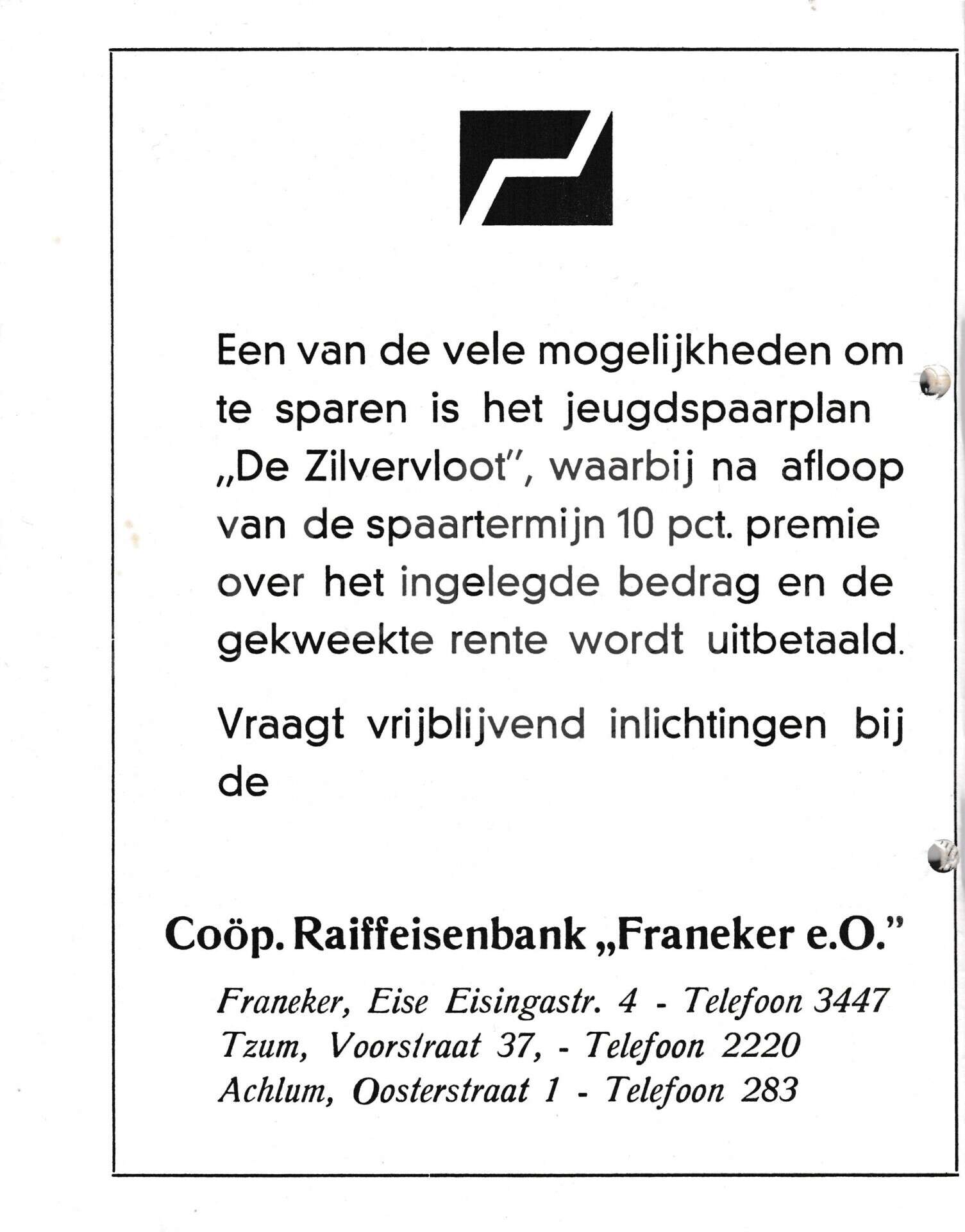 Beschrijving:It Fleurige Flittergat: 1971 7de jaargang nr. 9: Coöperatieve Boerenleenbank Franeker, Zilvervloot sparen.