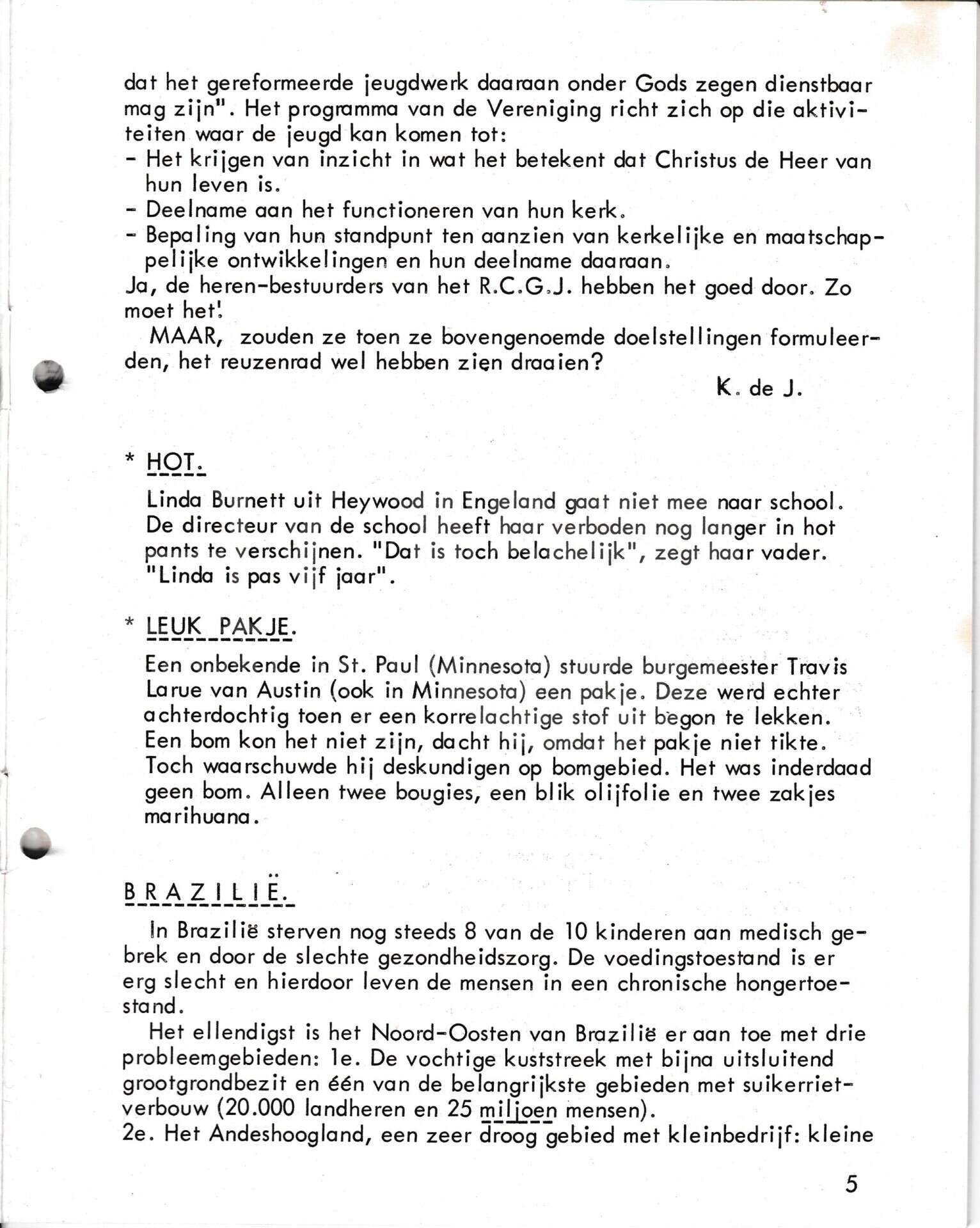 Beschrijving:It Fleurige Flittergat: 1971 7de jaargang nr. 9: vervolg Zij draaien ook mee in het Reuzenrad. ( onze Toekomst). Flitters. Brazilië