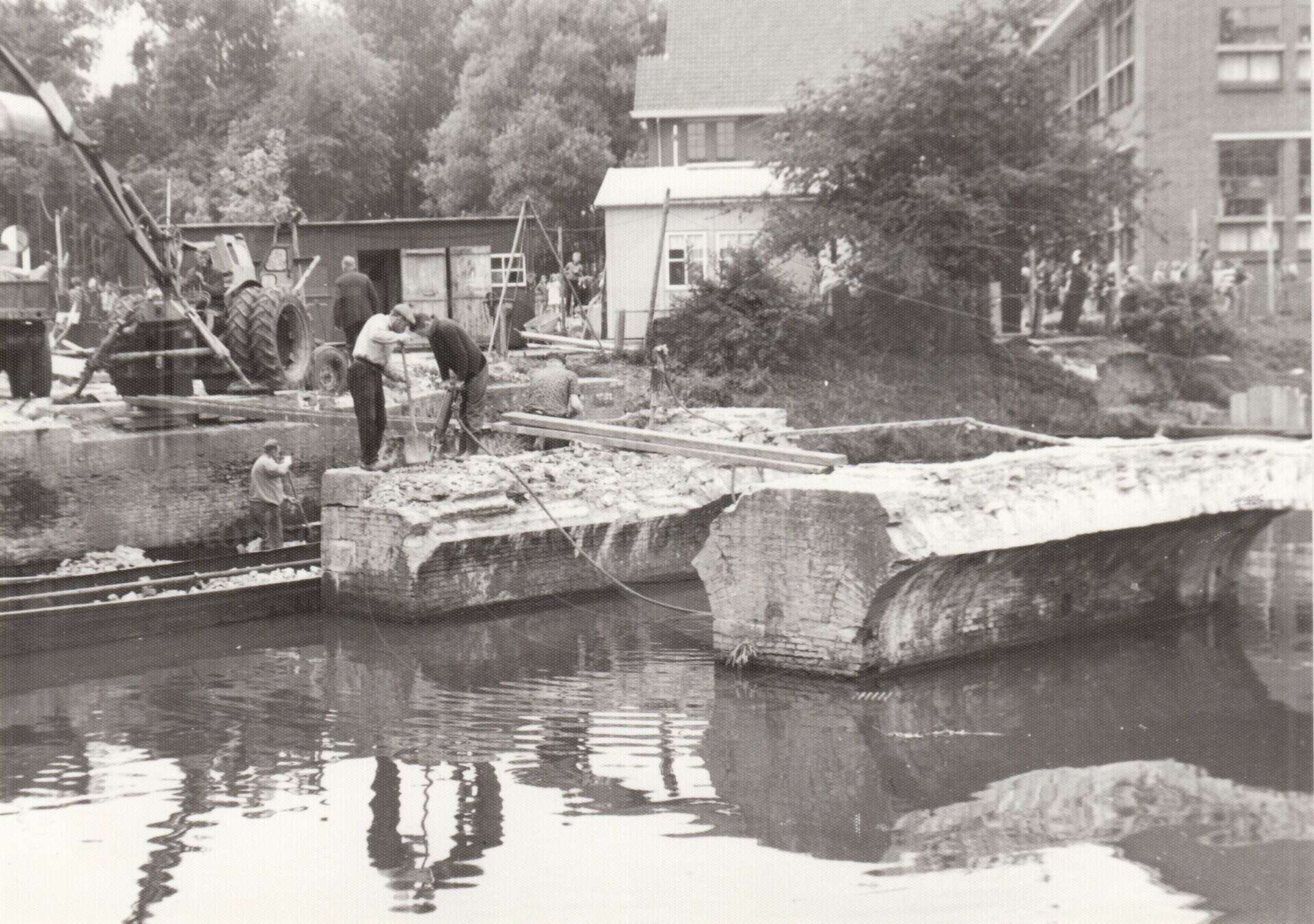 Beschrijving:Ongeluk Noorderpoort: Noorderpoort of de Donjumerpoort nadat een vrachtauto in de nacht van 9 september1966 de brug onherstelbaar had beschadigd. De chauffeur was gevlucht. Het was niet het eerste ongeluk bij de sta in de weg brug.