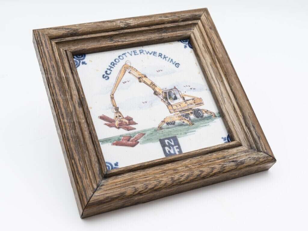 Beschrijving: | Een tegel in een houten lijstje van de Noord Nederlandse Schrootverwerking ( NNS ) |