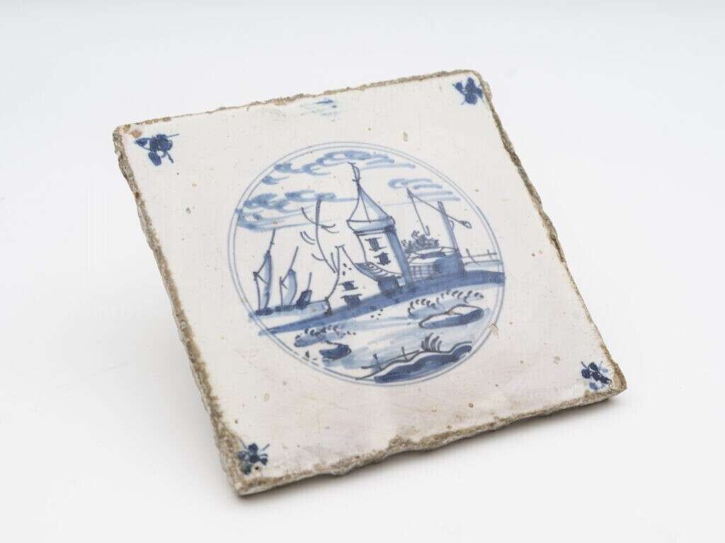 Beschrijving: | Tegel met een voorstelling van een huisje en scheepjes |
