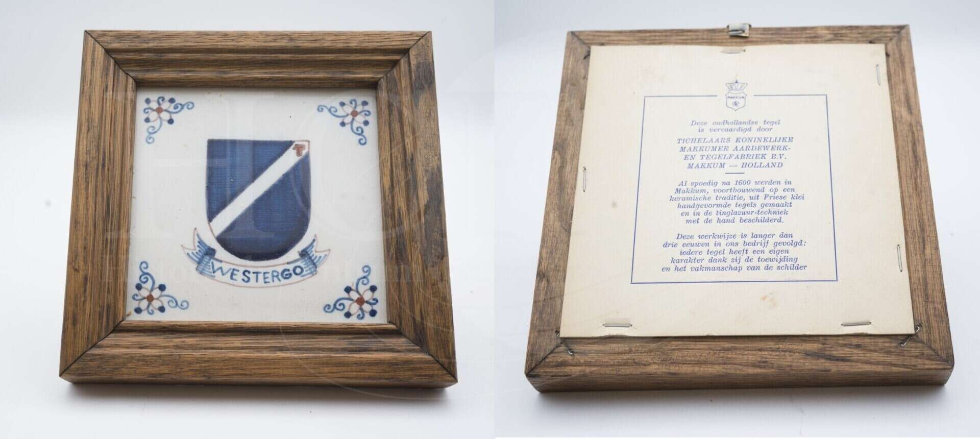 Beschrijving:Tegel in lijst van sociale werk voorziening "Westergo" (Nu Empatec)
