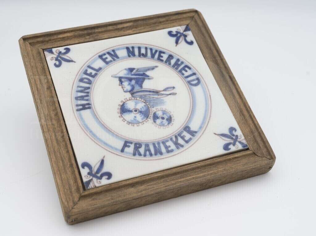 Beschrijving: | Tegel in lijst met een afbeelding van het logo van Handel en Nijverheid Franeker |