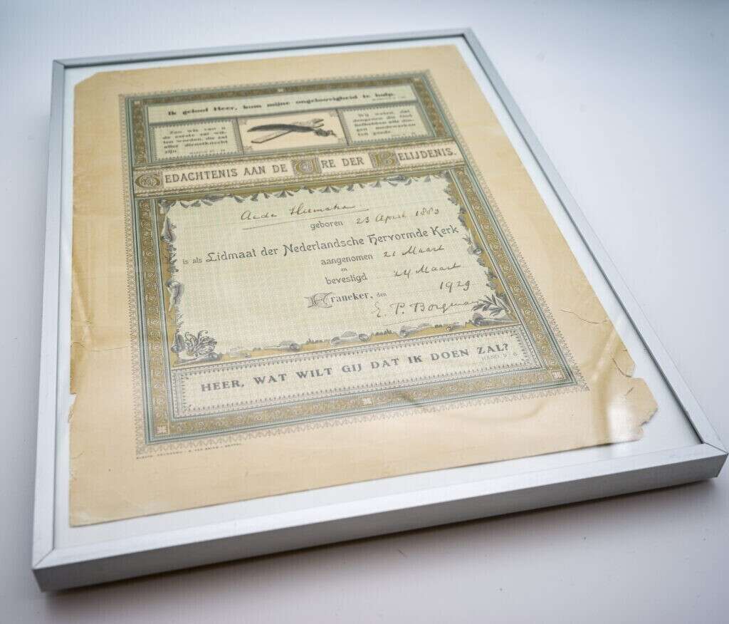 Beschrijving: | Certificaat van belijdenis van Aede Hiemstra, geboren te Ried. |