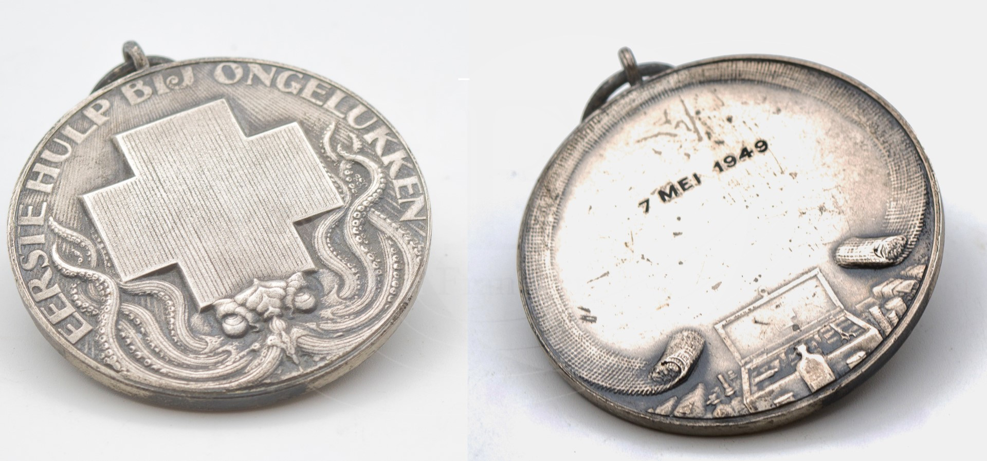 Beschrijving:Medaille van het Rode kruis voor eerste hulp bij ongelukken ( EHBO ) ( afdeling Franeker opgeheven rond 2023 )