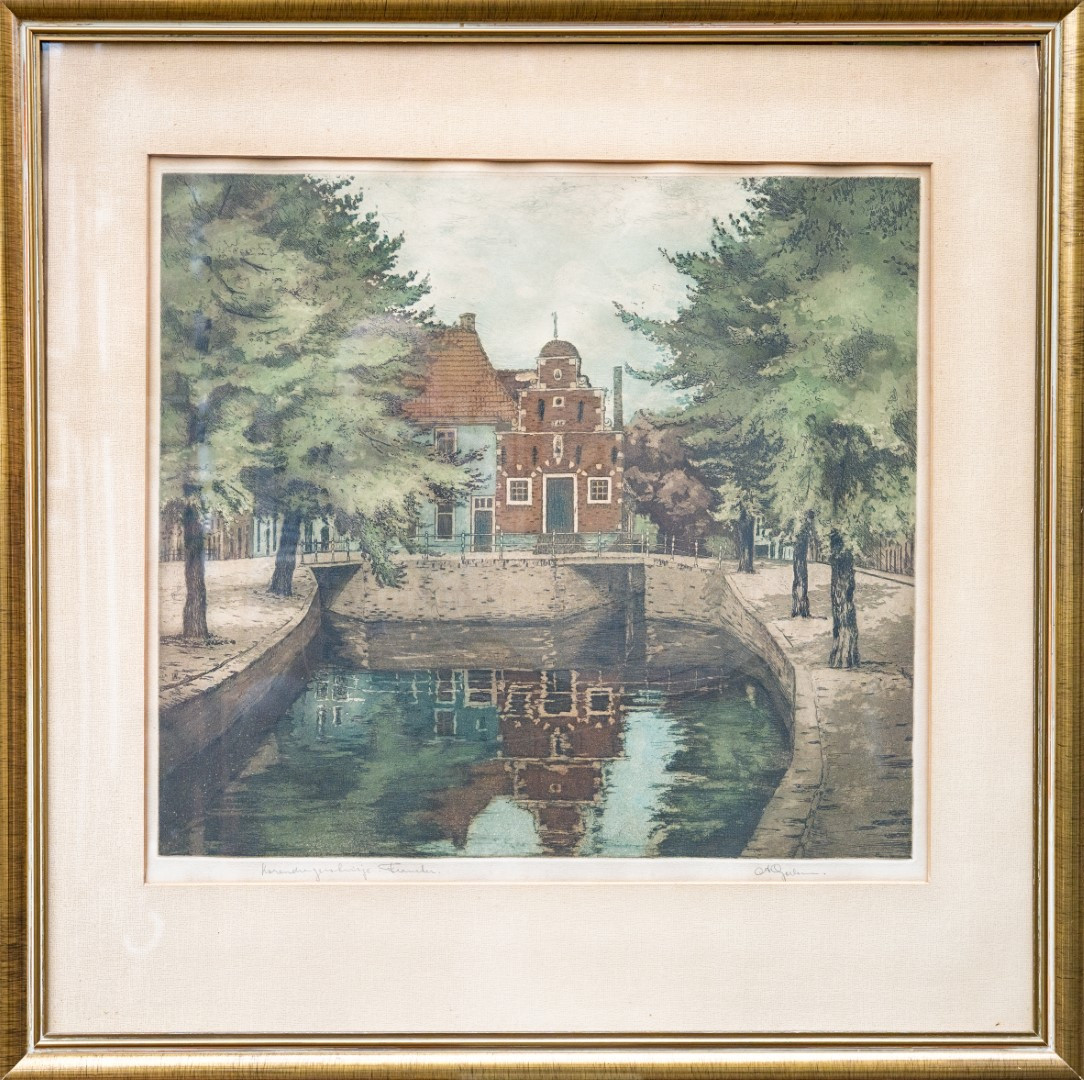 | Beschrijving: | kleurenets uit 1945 met als Titel: 'Korendragers- of Zakkendragershuisje te Franeker' van Abe Gerlsma. |