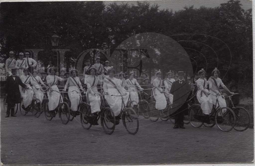 | Beschrijving: | Dames op de fiets tijdens een optocht op het Oude Kaatsveld ? |